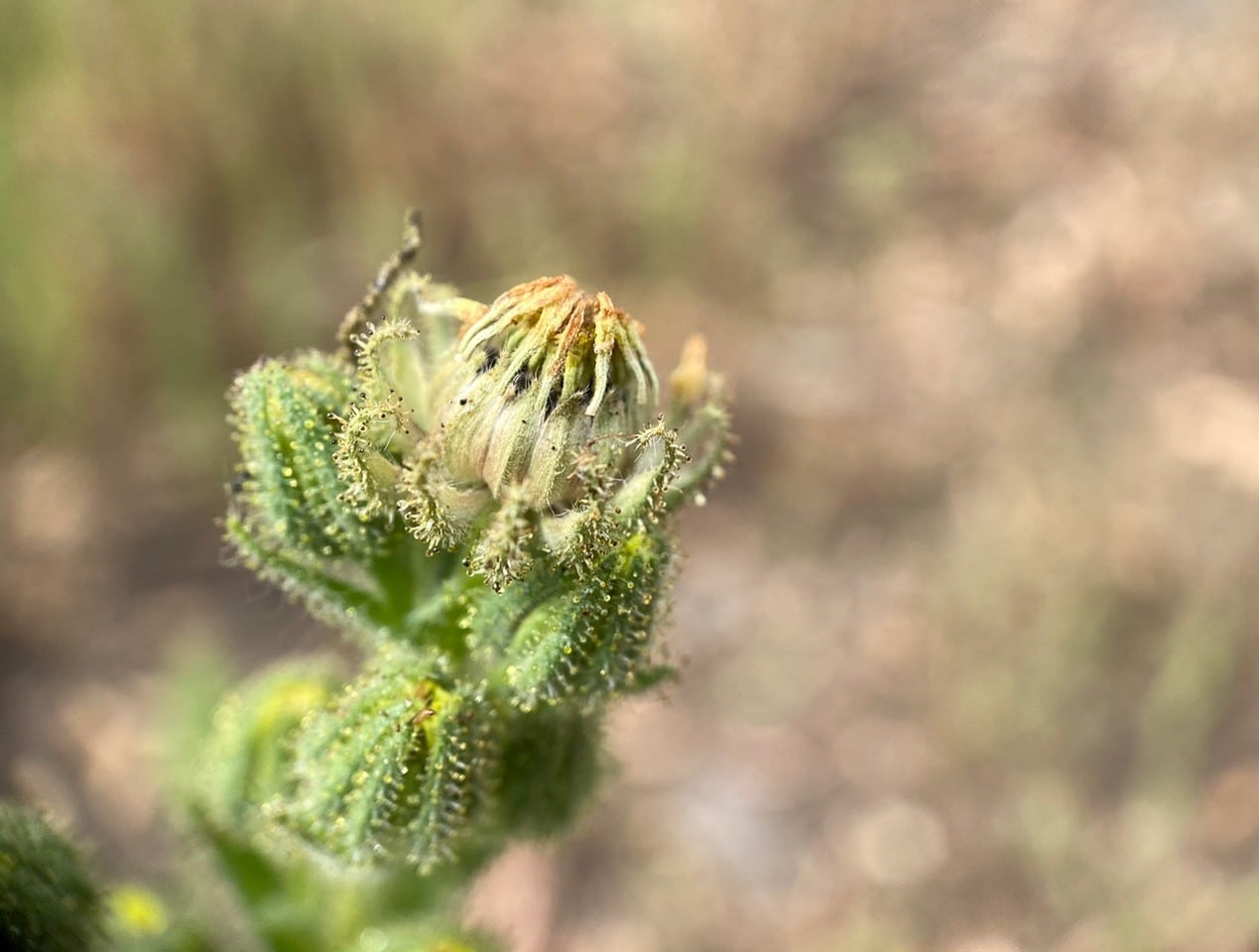 The phyllaries of this seed head have opened up to reveal the black seeds arranged vertically within the central cup. Cost Tarweed is a prolific seeder, each flowerhead producing dozens of seeds. They are easily shaken out of the ripe seed heads by the wind, if they are not already eaten by the birds. In the past, I have often seen large flocks of finches gather on the senescent plants to feed on the seeds.