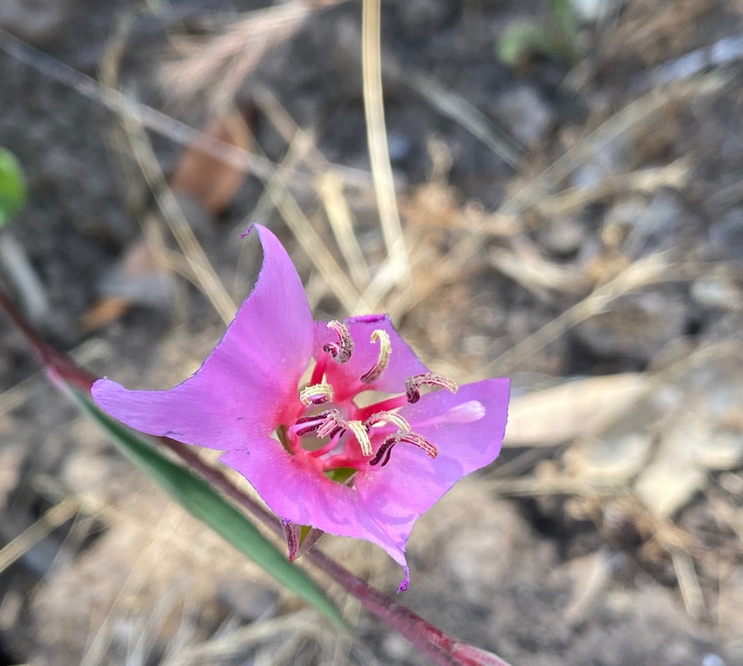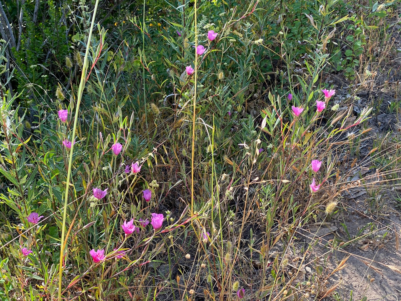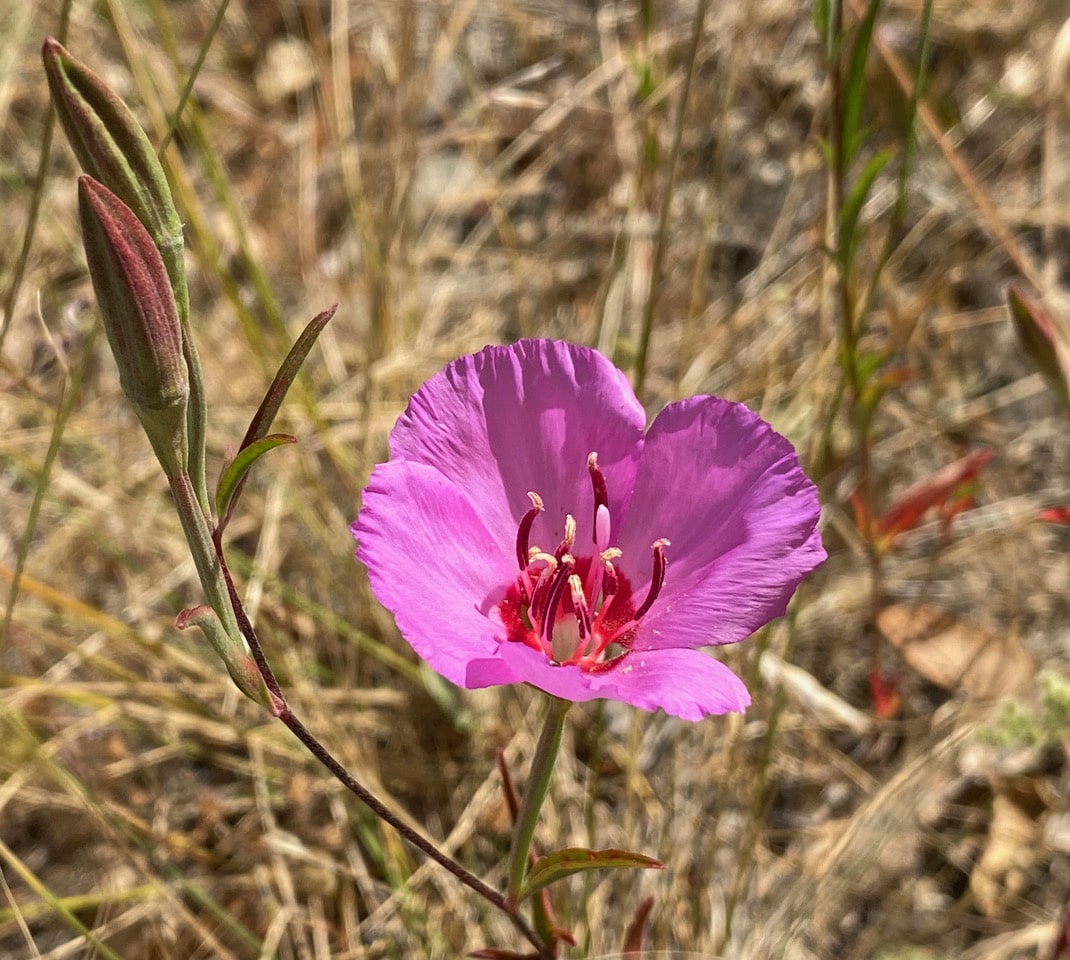 Hoping for a cooler walk on this warm morning, I start early at 8:30 am and head south on Skyline Trail from Siesta Gate. What a delight to see Farewell-to-Spring, Clarkia rubicunda in bloom!