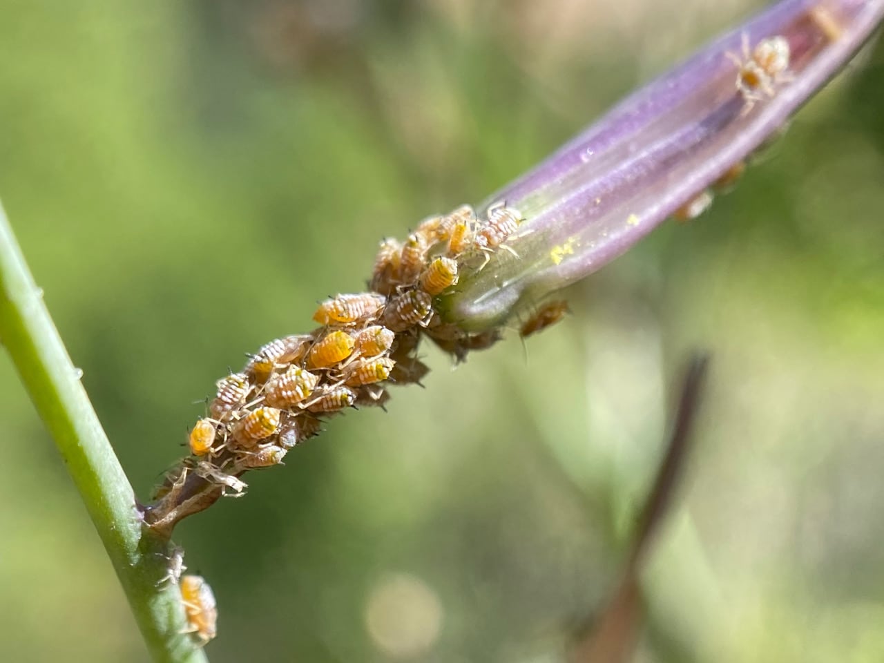 The aphids are found mostly on the flower buds or pedicels.