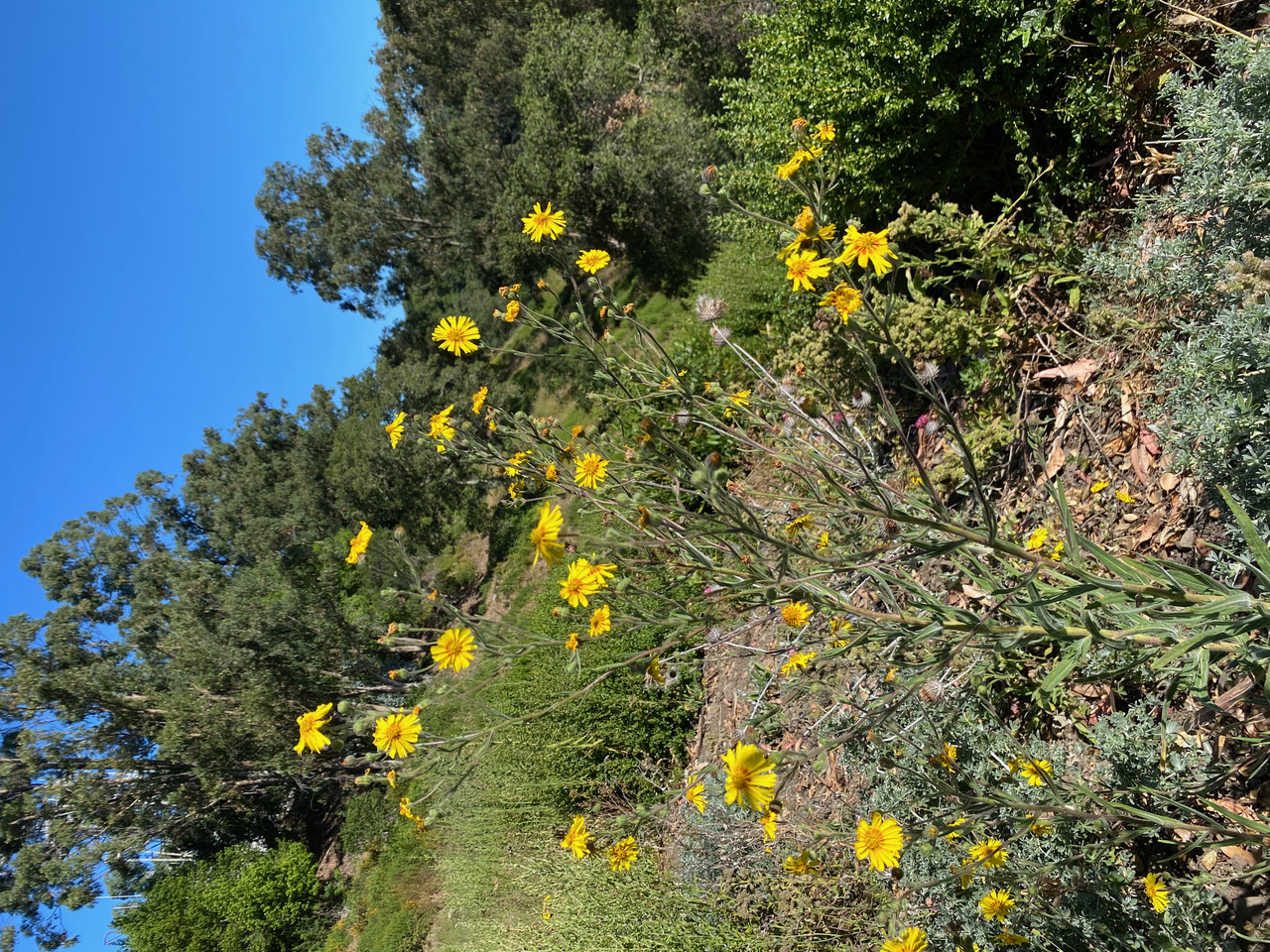 I am delighted to see that the flowerheads of Elegant Tarweed, Madia elegans are still open when I reach the top of the hill near the Radio Tower. It won’t be long before they are closed because the morning is fast heating up.
