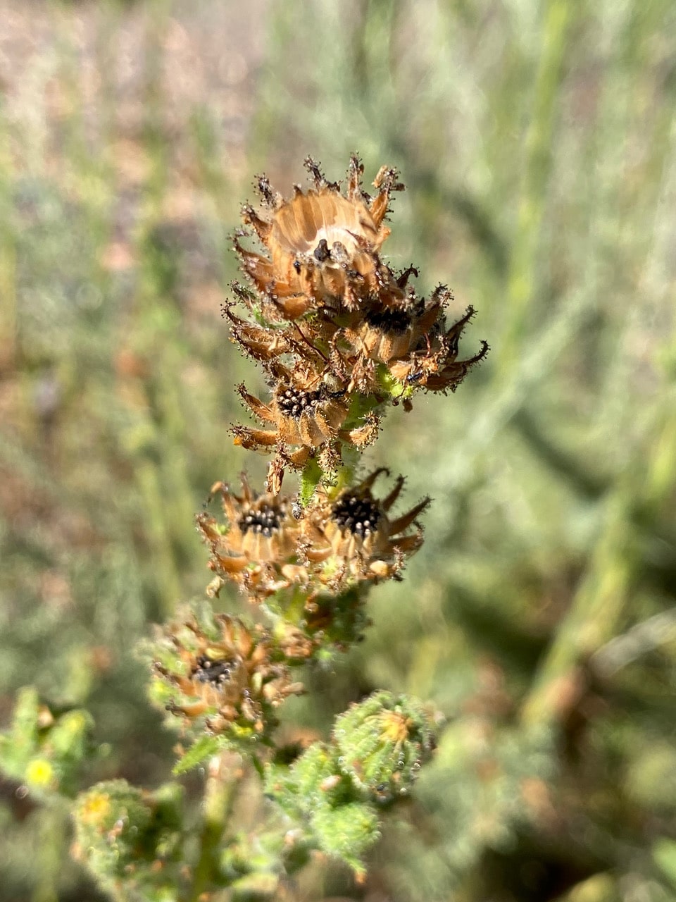 Many of the Coast Tarweed, Madia sativa are already in seed. The species is a prolific seeder, their seed heads packed with vertically arranged seeds that are easily spilled out of the “cups” by the wind.
