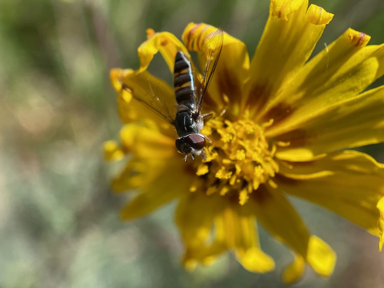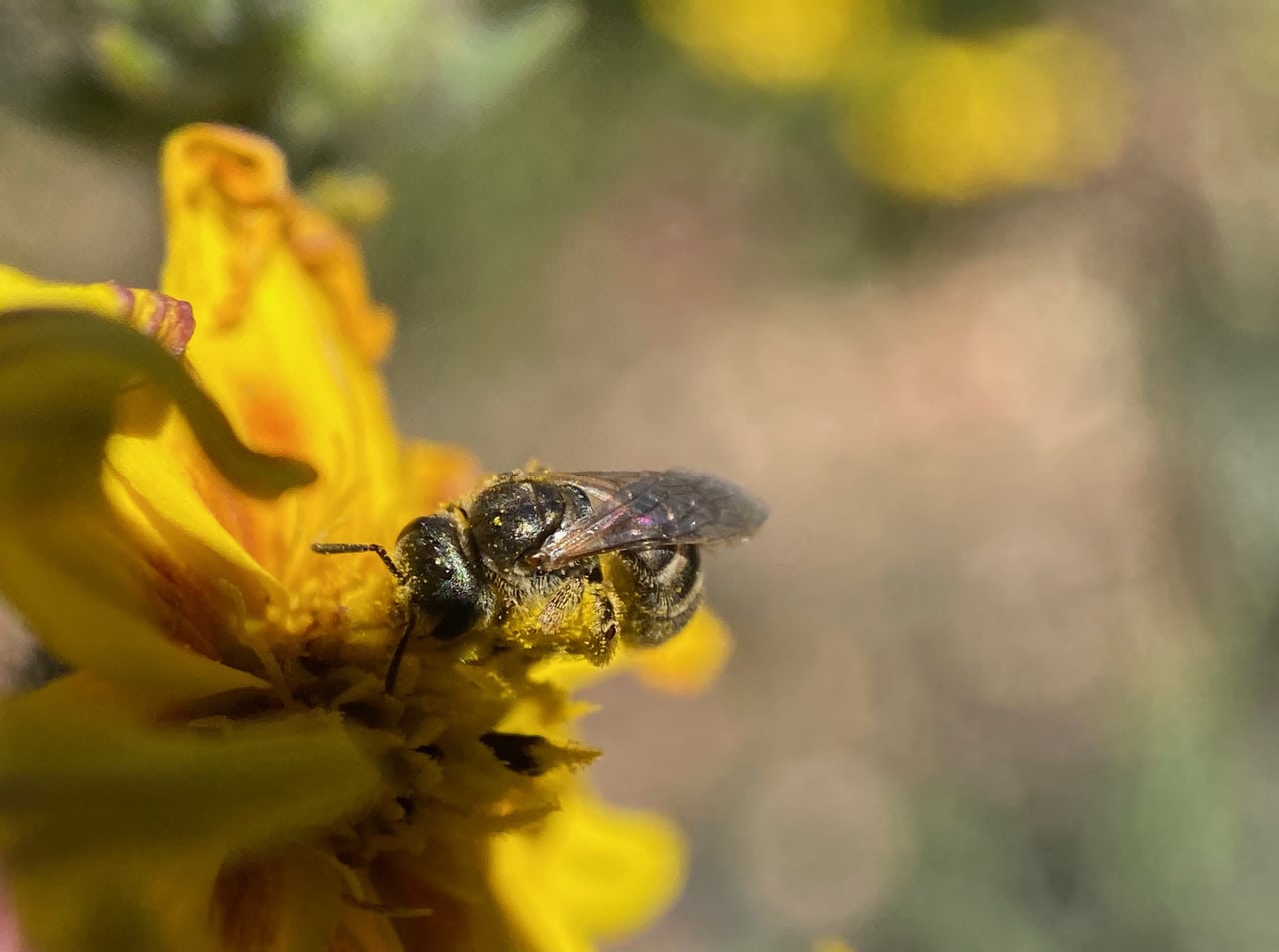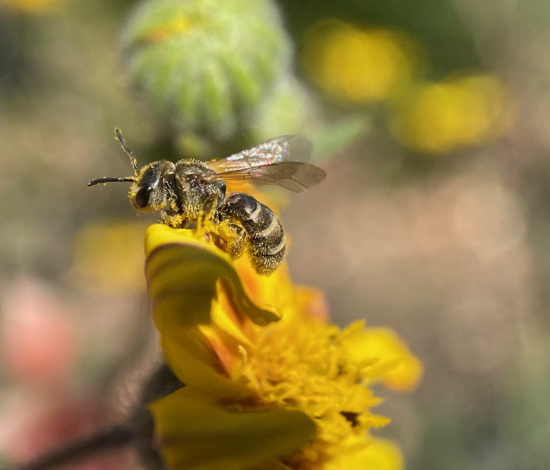 Time for some grooming? Asteraceae pollen tends to be very sticky and clumpy, adhering to insect visitors readily.