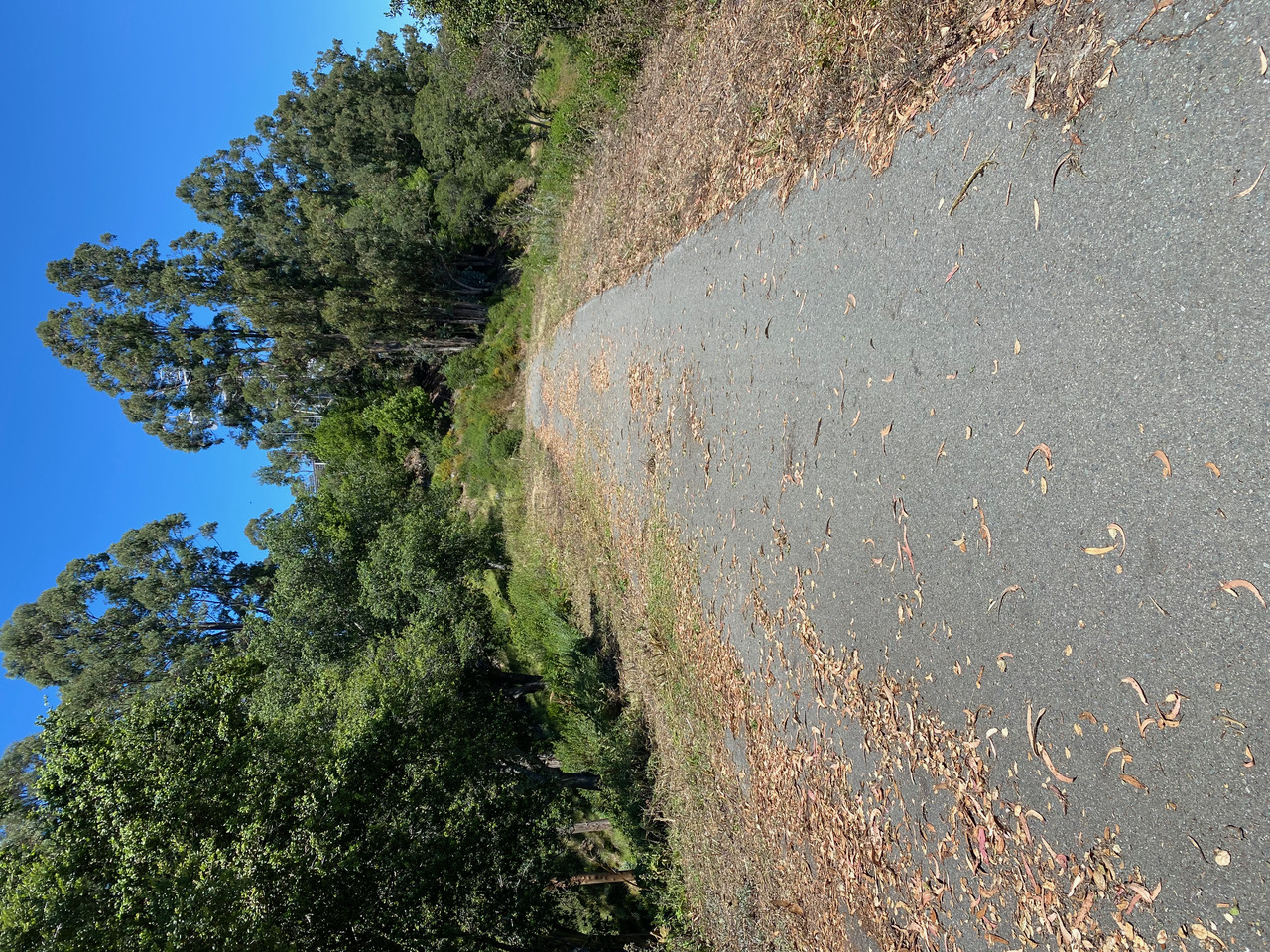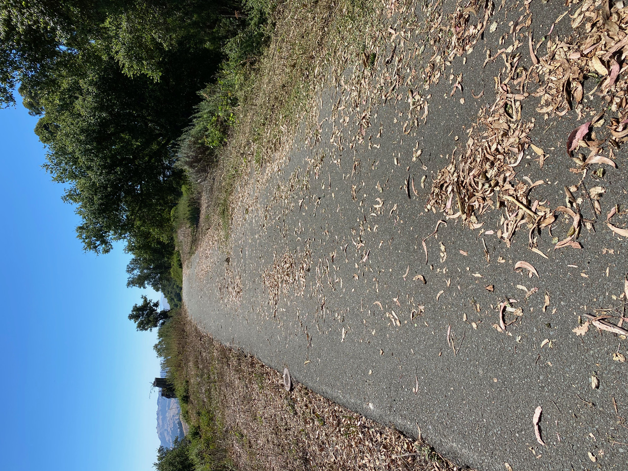 Now I think I know why I had that unfortunate encounter with mama turkey down the hill at Siesta Gate. This stretch of the road near the radio tower is frequented by a flock of turkeys. I see them almost every time I am up here by myself. They are never bothered by my presence, even at close range, and I have never been afraid of them. It’s a peaceful, mutually respectful co-existence. Perhaps the brush-clearing disturbance up here had scattered the birds. Mama turkey might have fled down the hill with her brood, only to be startled by me at Siesta Gate. I have never seen turkeys down there before.