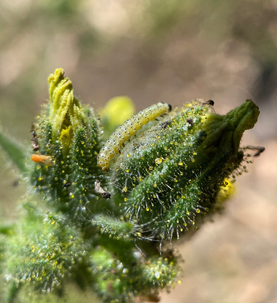 Here’s a young caterpillar of either the Heliothis or Heliothodes moths. It is impossible to tell them apart at this stage.