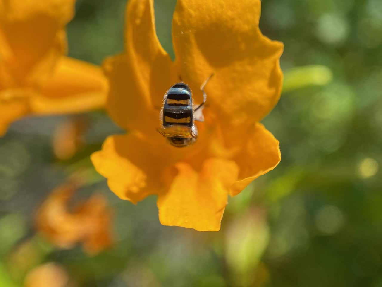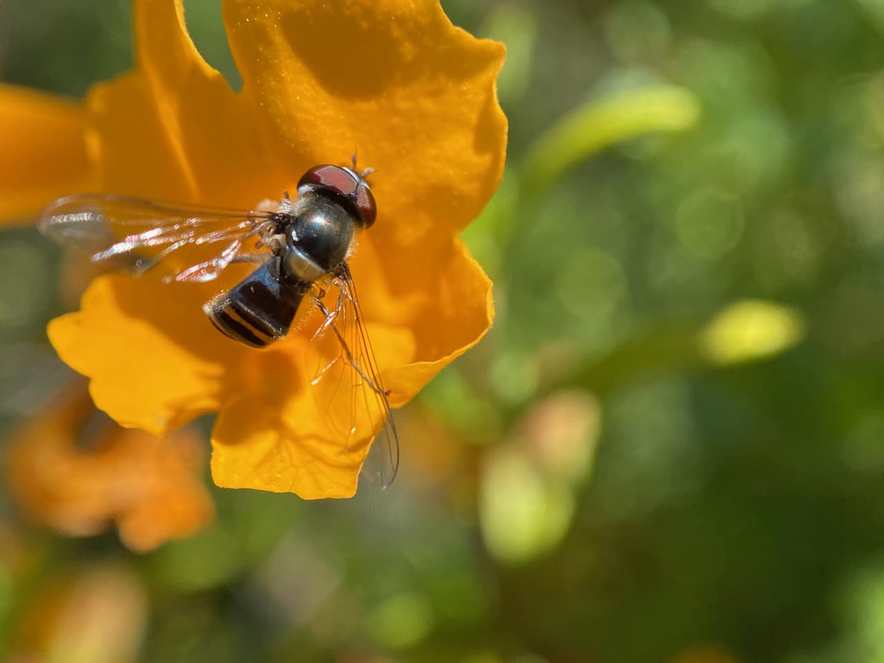 As the abdomen catches the light, it flashes bands of silver!