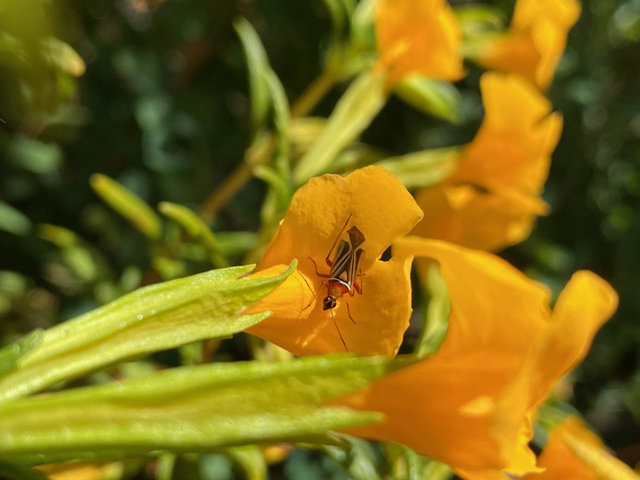 Hey, that’s an adult Plant Bug, Closterocoris amoenus (family Miridae)! All the ones I come across today are adults. The ant-mimicking nymphs I have been seeing over the past month have all transformed into adults! Both the nymphs and adults have the same habit of sitting at the entrance of the Sticky Monkeyflower. Adorable!
