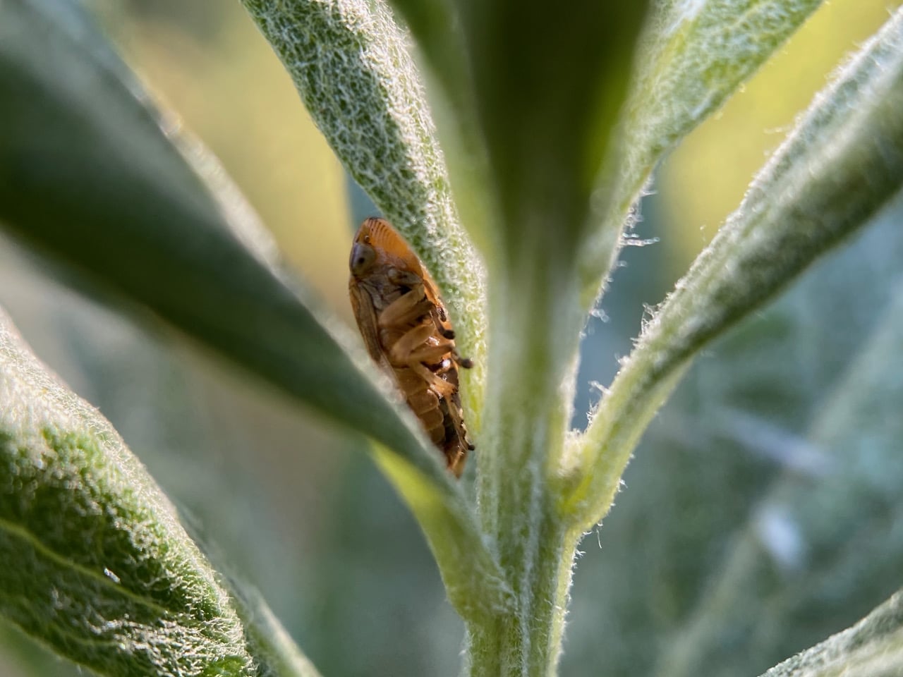 Just a few steps away, another bug is hidden between the leaves of another California Mugwort. It is a Meadow Froghopper, Philaenus spumarius (family Aphrophoridae).