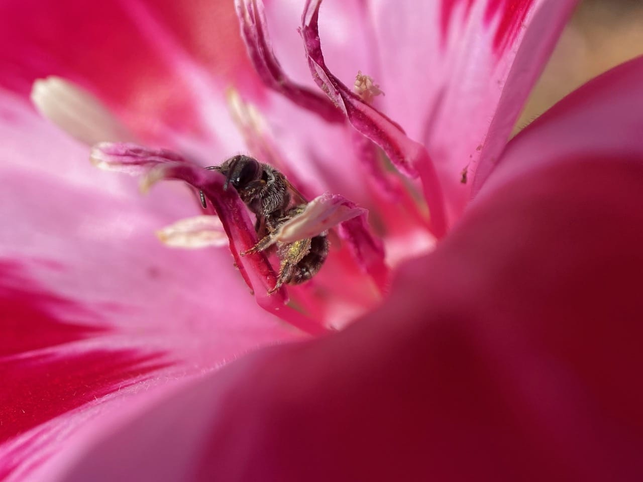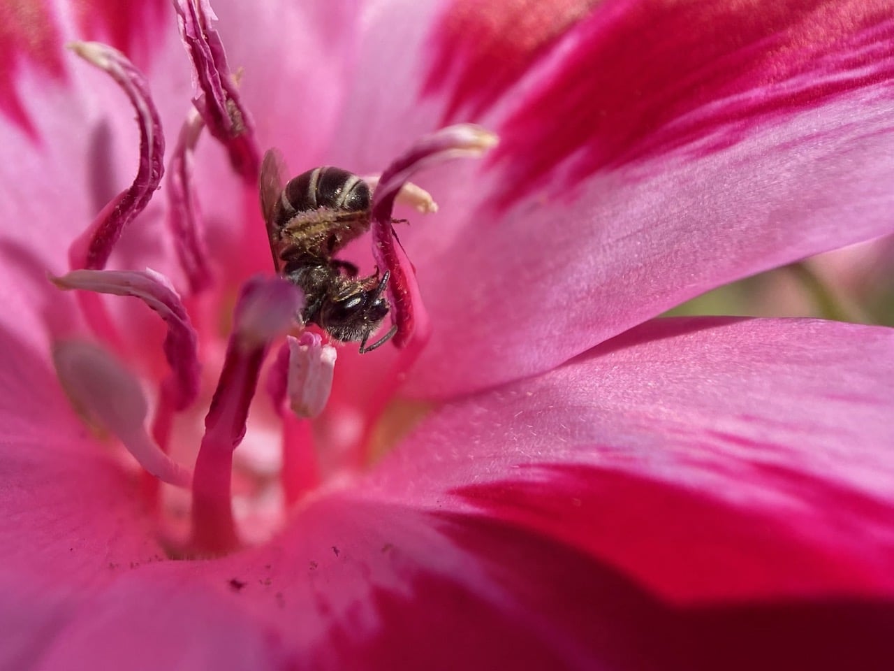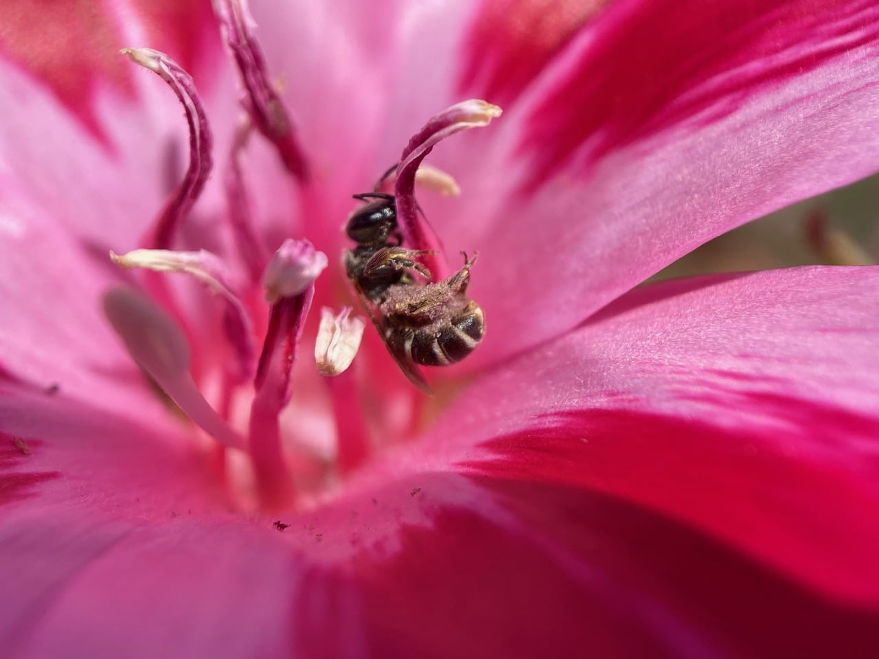 It’s fun to watch the little bee work the individual anthers one at a time. Their agility is only matched by their diligence.