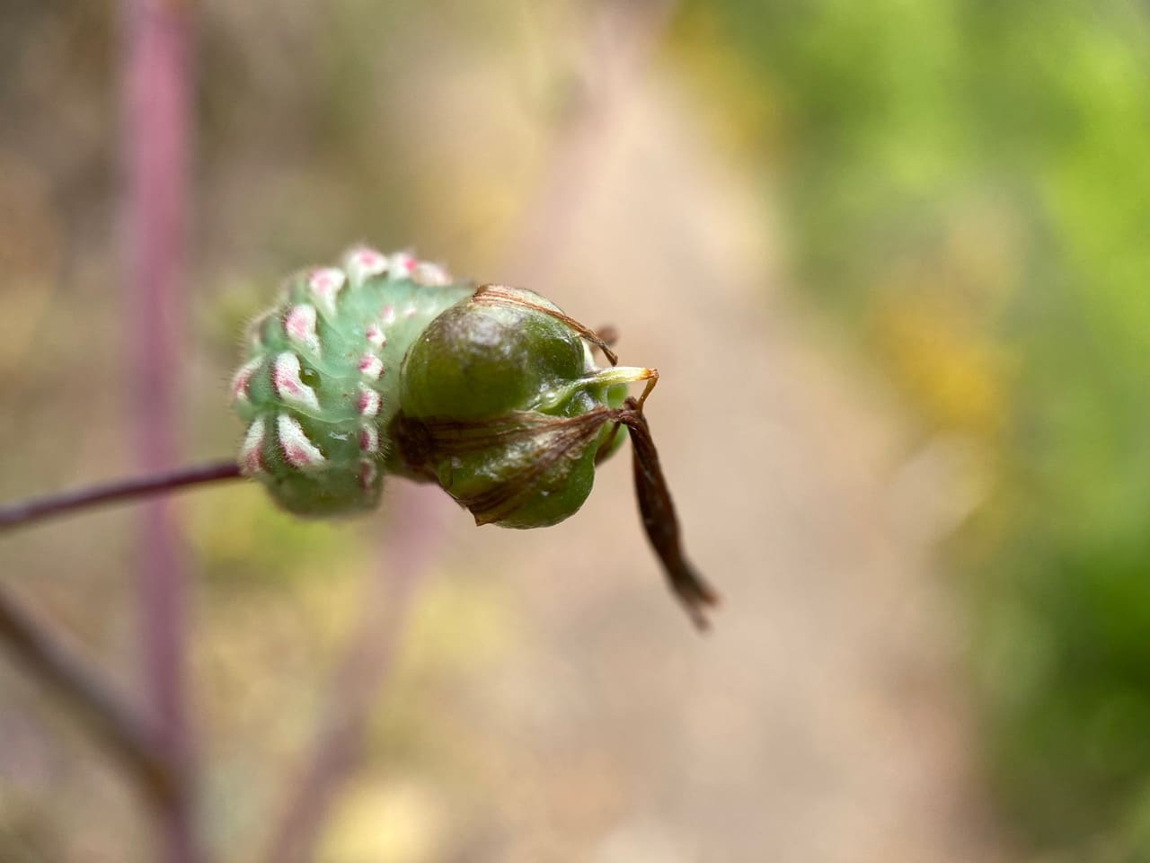 Judging by the direction the caterpillar is moving (almost imperceptibly), this is its front end. What a mystifying critter!