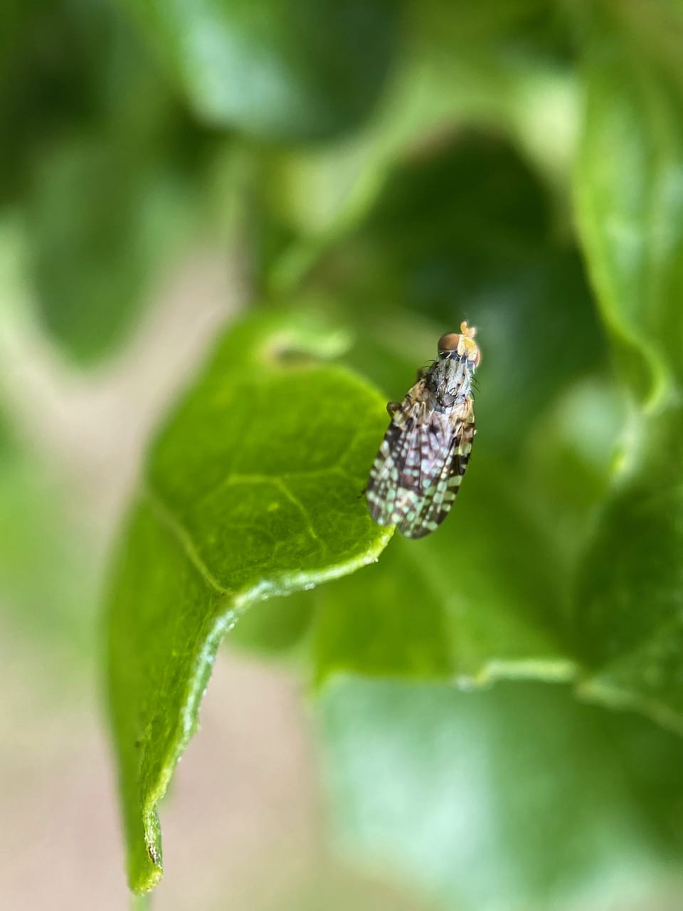 A new Fruit Fly (family Tephritidae) on Coyote Brush! The pattern on its picture wings are so busy it is hard to discern. I snap a series of pictures as it moves around on the foliage, hoping that someone on iNaturalist would be able to identify it.