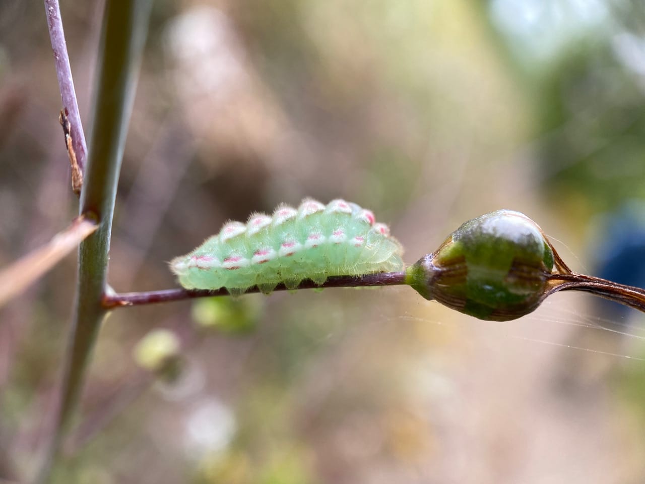 One last look at the Brown Elfin caterpillar on the Soap Plant. Did it weave the silk mesh around the fruit? Why?