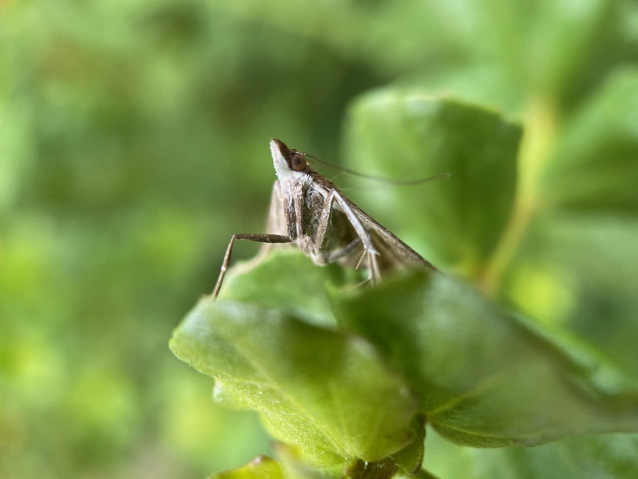 A moth lands on a Coyote Brush and immediately assumes this posture with its snout pointing skyward, while remaining stock still.