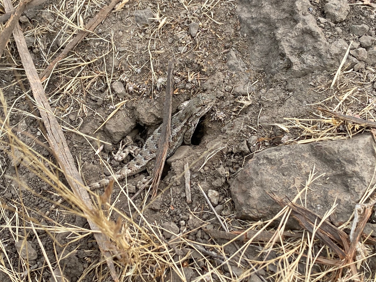 A Western Fence Lizard stops momentarily in front of me before running off into the undergrowth.