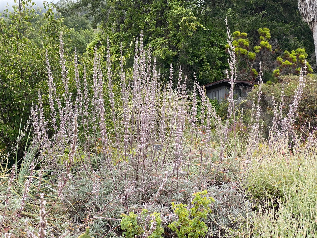 The White Sage, Salvia apiana is in glorious bloom, its tall flower spikes reaching for the sky.