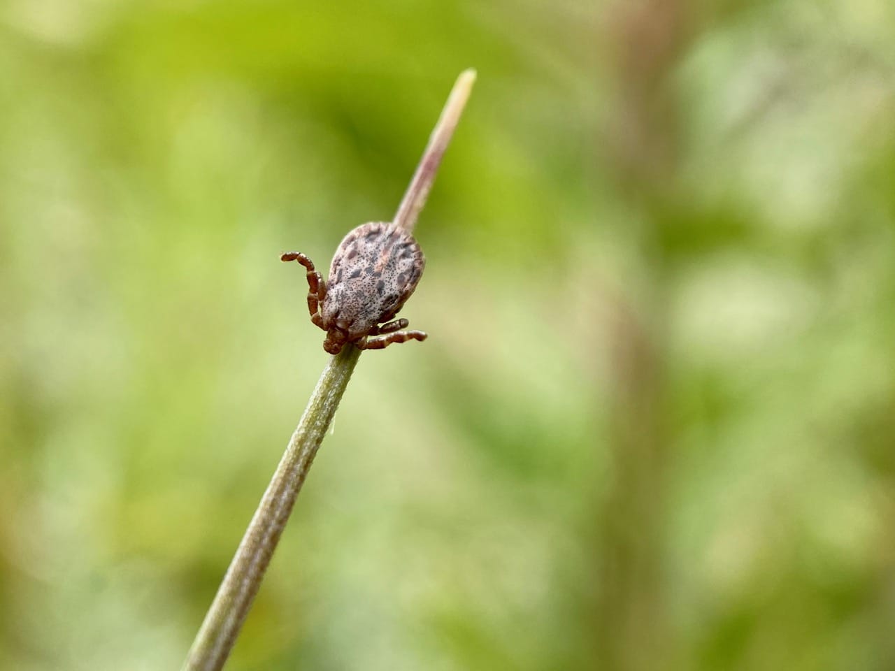 Ticks pick a place to wait by identifying well-used paths, resting on the tips of grasses and shrubs. They find their hosts by detecting animals’ breath and body odors, or by sensing body heat, moisture, and vibrations. Some species can even recognize a shadow. Ticks can’t fly or jump, but many species wait in a search position known as “questing”. Holding onto leaves or grass by their third and fourth pair of legs, they hold the first pair of legs outstretched, waiting to climb on to a passing host. When a host brushes the spot where the tick is waiting, it quickly climbs aboard. Recent research has shown that ticks are significantly aided by electrostatic forces (static electricity) when attaching to their hosts, allowing them to be passively attracted across air gaps to land on potential hosts due to the natural electrical charges animals accumulate on their bodies.