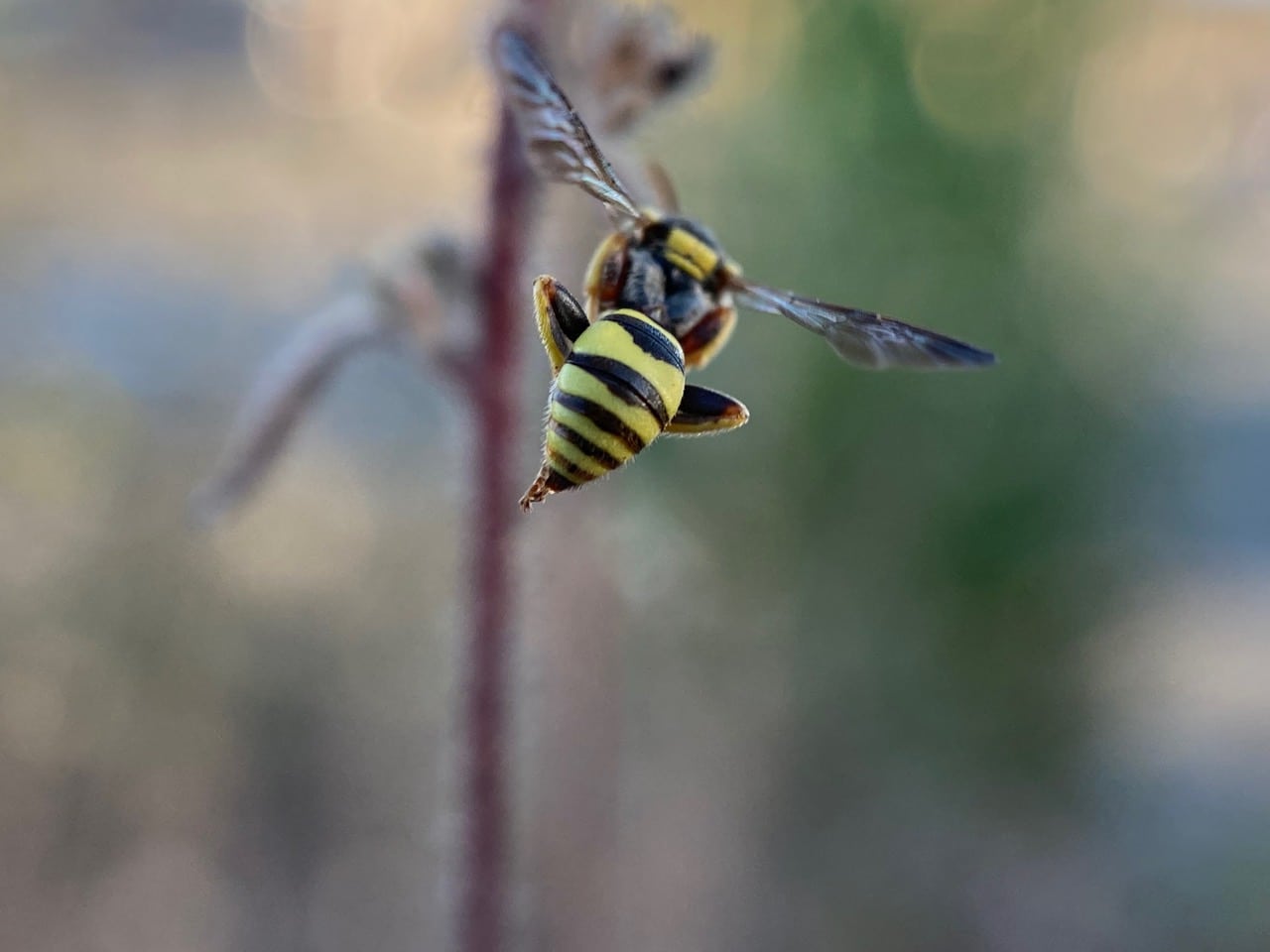 Nomad Bees occur worldwide. All known species parasitize ground-nesting bees, and their habitats and seasonality correlate closely with their hosts. In early spring, females scout out their hosts, searching for nests to parasitize. The female Nomada sneaks into the host’s nest while the resident female is out foraging, then lays eggs in the nest. The parasite larva that hatches out kills the host offspring and feeds on the host’s provisions. This type of parasitism is termed brood parasitism. The parasites pupate in the host cell and finally emerge as adults the following season along with the hosts.