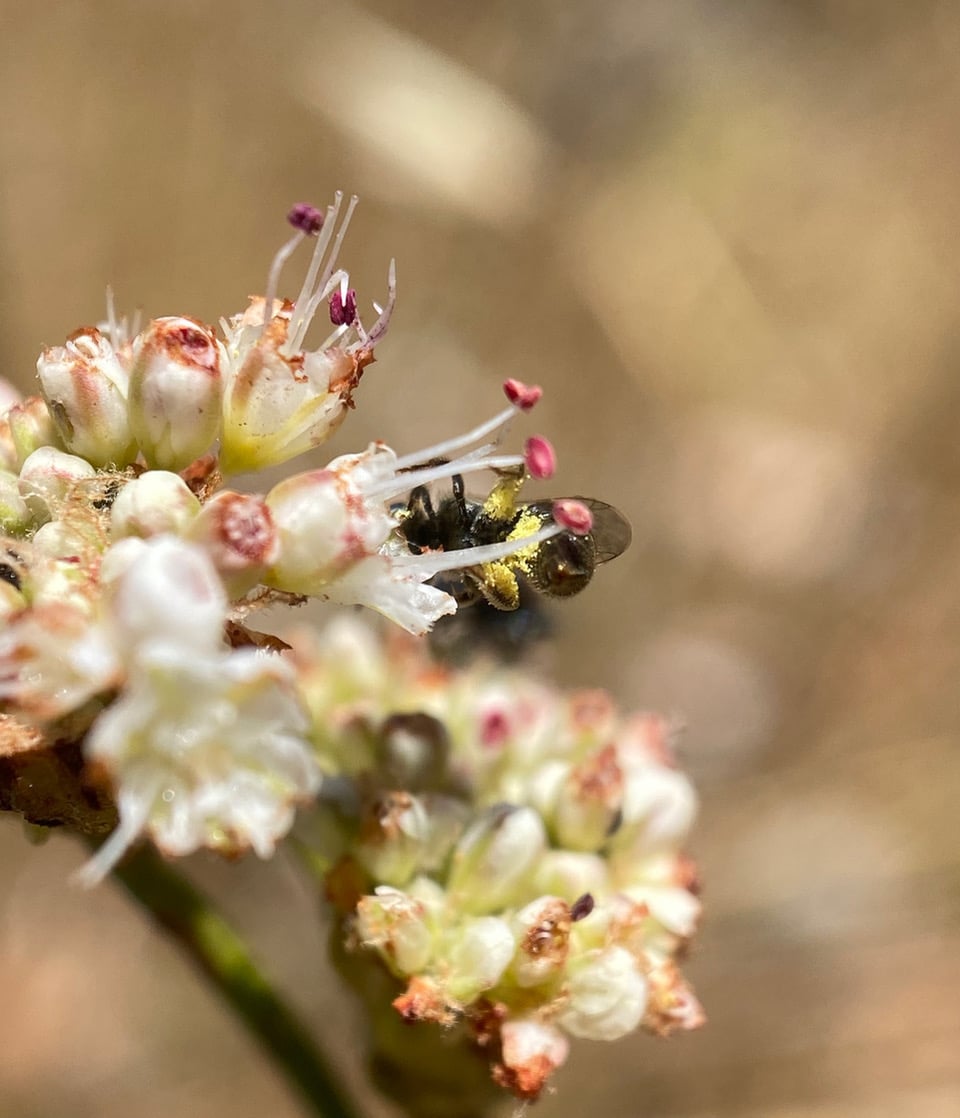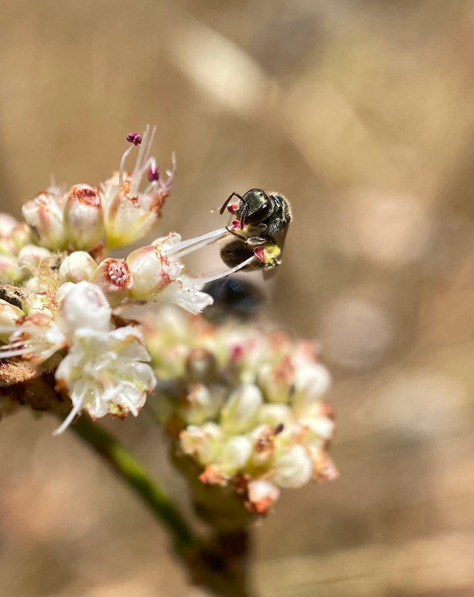 The bee is also taking nectar from Nude Buckwheat flowers.