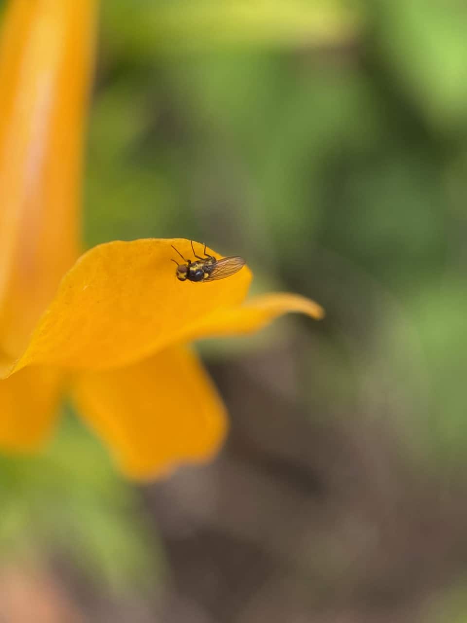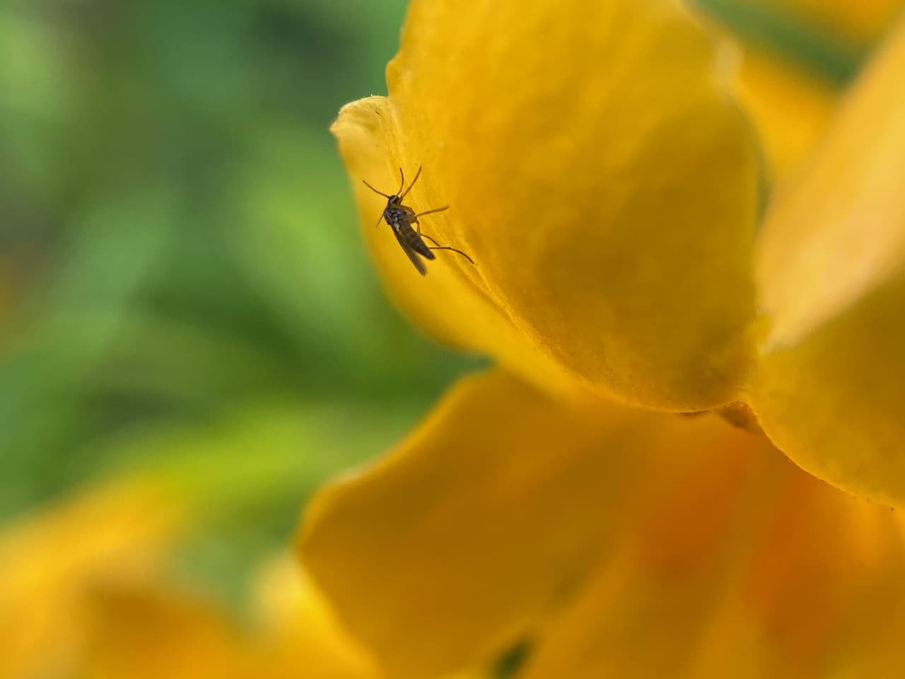 A Fungus Gnat (family Mycetophilidae) lands on the upper lip of a Sticky Monkeyflower.