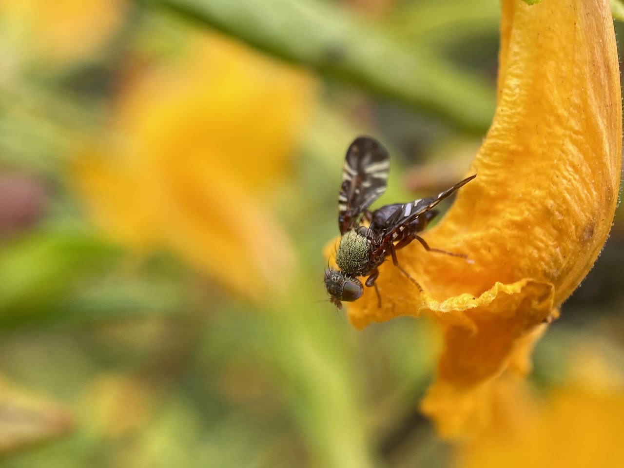 Here’s a fly that is frequently found on Sticky Monkeyflower. It has never been identified by iNaturalist.