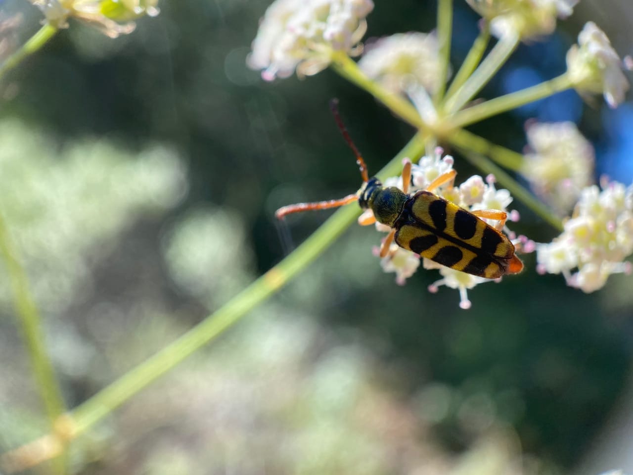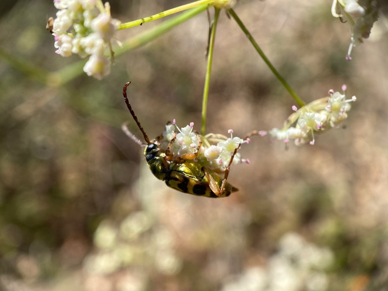 Hey, there’s a newcomer on the Kellogg’s Yampah flowers, Perideridia kelloggii. A Longhorn Beetle (family Cerambycidae)?