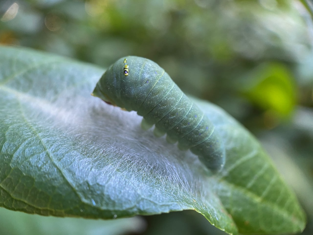 Swallowtail caterpillars (family Papilionidae) sport some of the biggest and most convincing fake eyes of any butterfly species in the world. Blue’s fake eyespots will undoubtedly grow more prominent as it matures. These are adaptations that have evolved to give the caterpillar the appearance of being more threatening than it really is. Any bird, mouse or lizard looking for a quick meal will think twice before attacking the creature – it looks enough like a snake to scare off a predator.