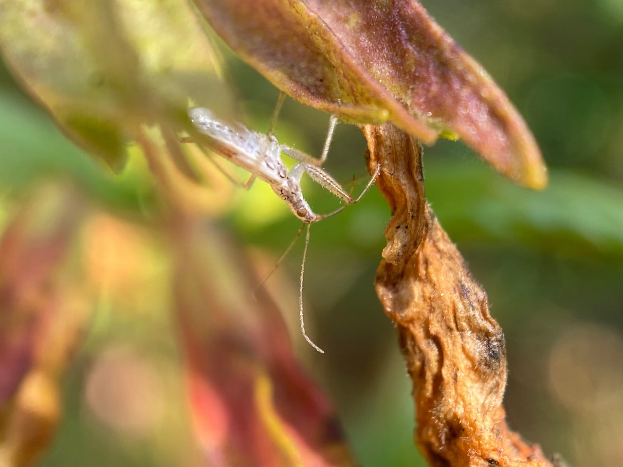 Lacewings are insects in the large family Chrysopidae of the order Neuroptera. Adults are crepuscular or nocturnal. They feed on pollen, nectar and honeydew supplemented with mites, aphids and other small arthropods. Eggs are deposited at night, hung on a slender stalk of silk usually on the underside of a leaf. Immediately after hatching, the larvae molt, then descend the egg stalk to feed. They are voracious predators, attacking most insects of suitable size, especially soft-bodied ones (aphids, caterpillars and other insect larvae, insect eggs). Their maxillae are hollow, allowing a digestive secretion to be injected in the prey. Lacewing larvae are commonly known as “aphid lions” or “aphid wolves”. In some countries, Lacewings are reared for sale as biological control agents of insect and mite pests in agriculture and gardens.