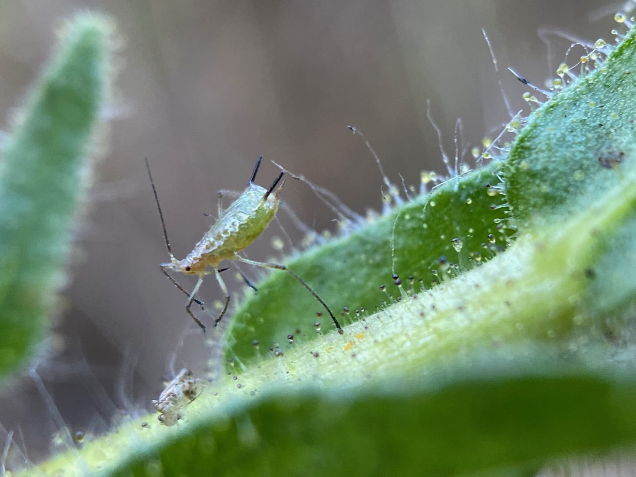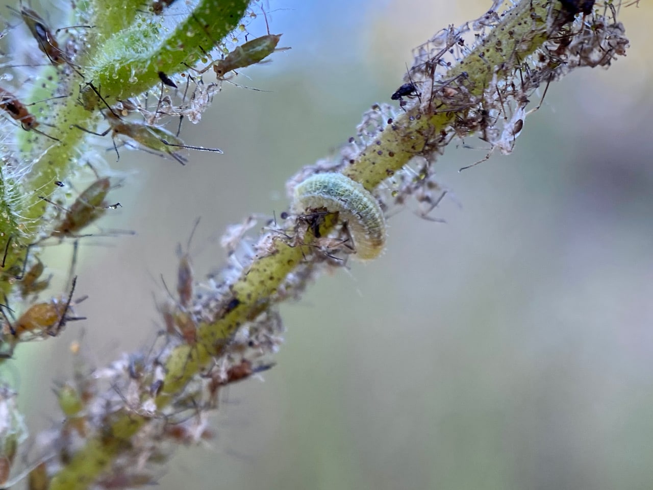 Hey, yet another aphid predator – a Hover Fly larva! The larva is so small it is barely bigger than the aphids it is tackling.