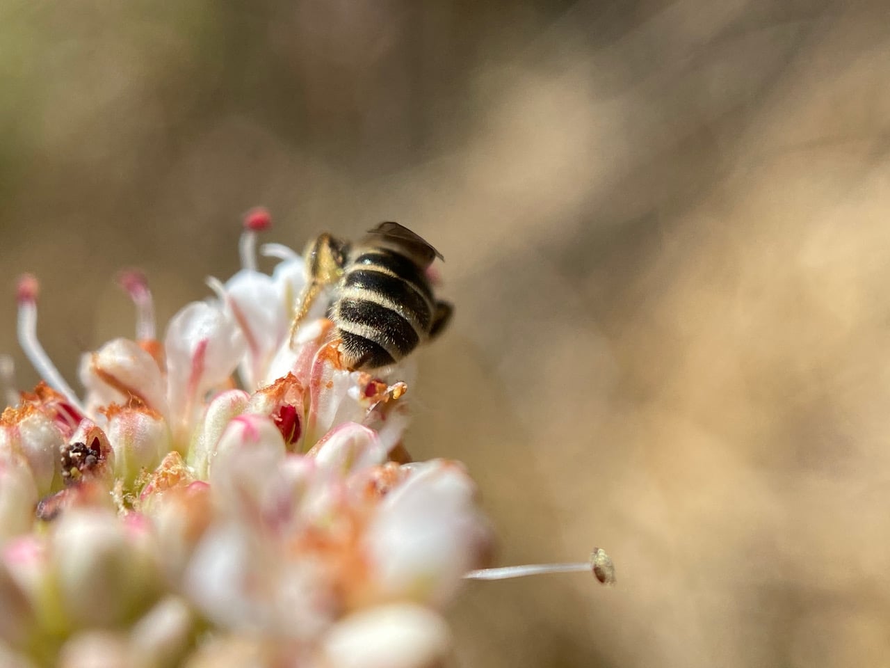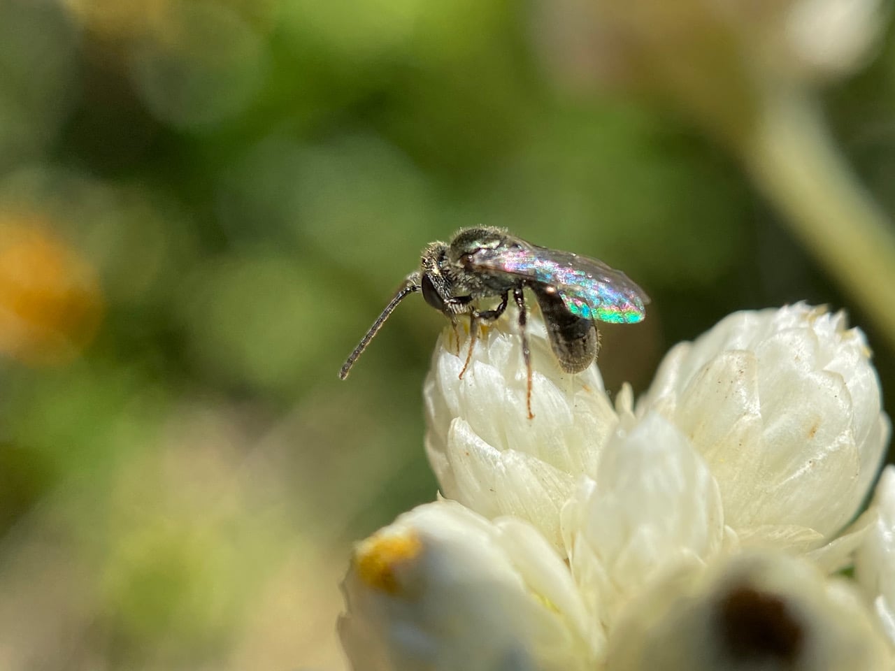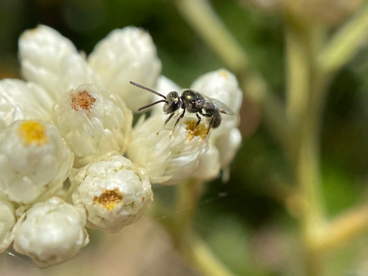 The flowers of the California Everlasting are just the perfect size for the tiny bee.