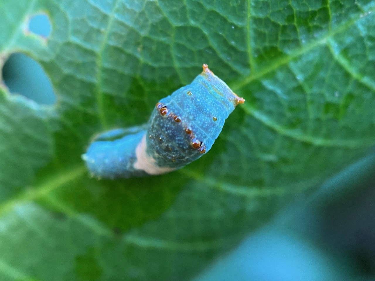 The Pale Swallowtail caterpillars are still on their respective Coffeeberry leaves. The early instars are sedentary homebodies that always return to their home base after feeding on other leaves. I am glad that I can find them so predictably (at least for now).