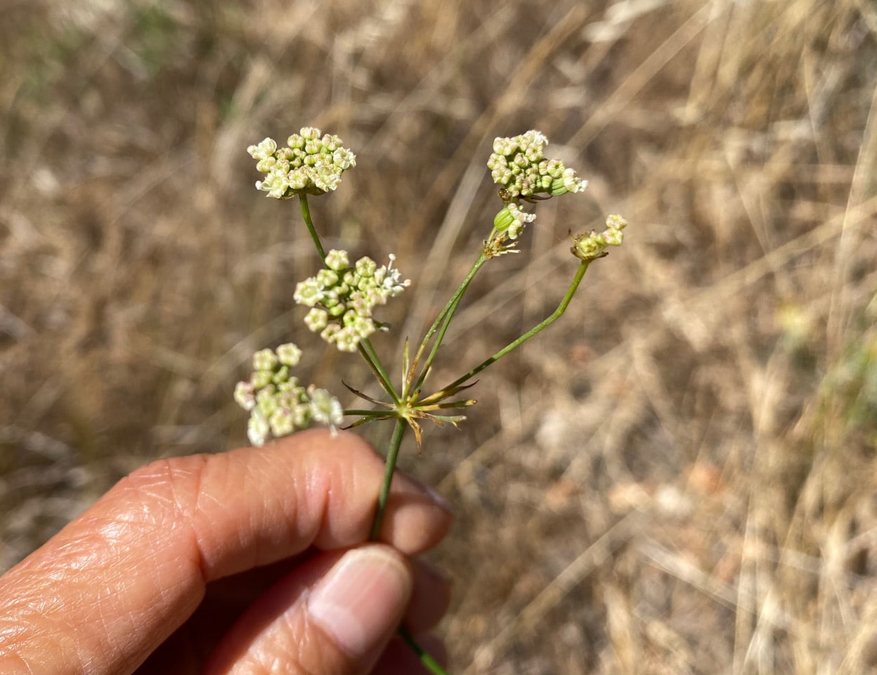 Yellowjacket wasps are frequently seen on the Yampah, Perideridia californica, either taking nectar, or hunting for prey.