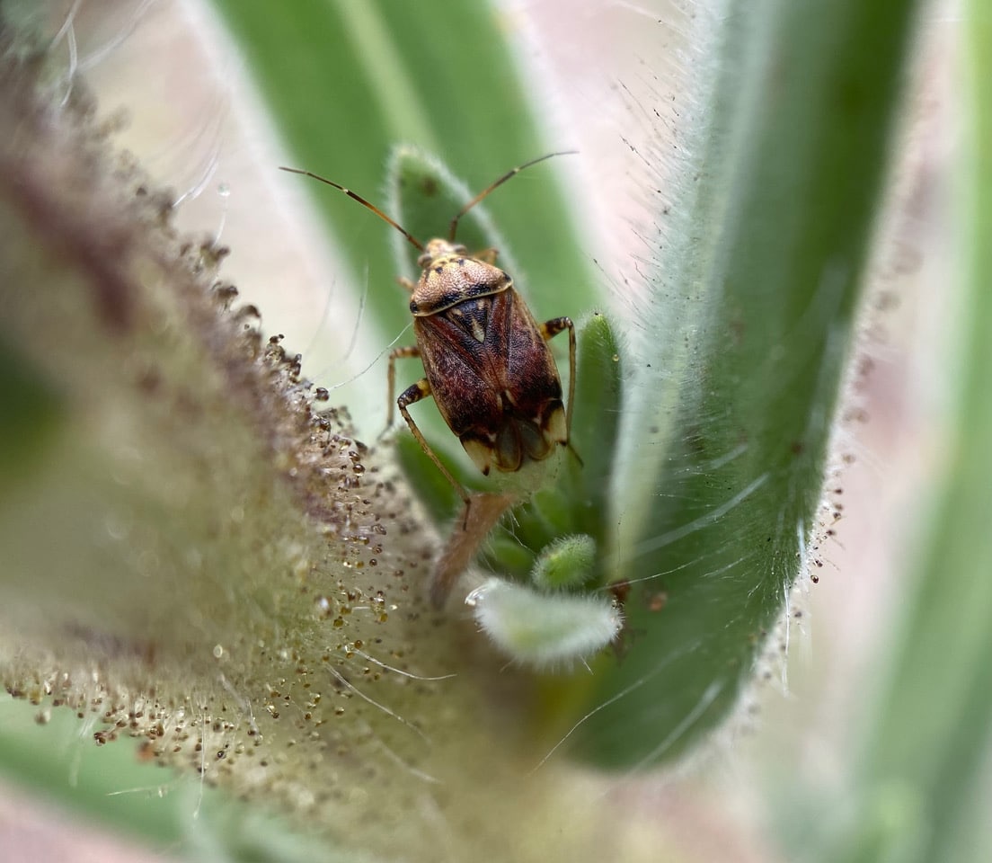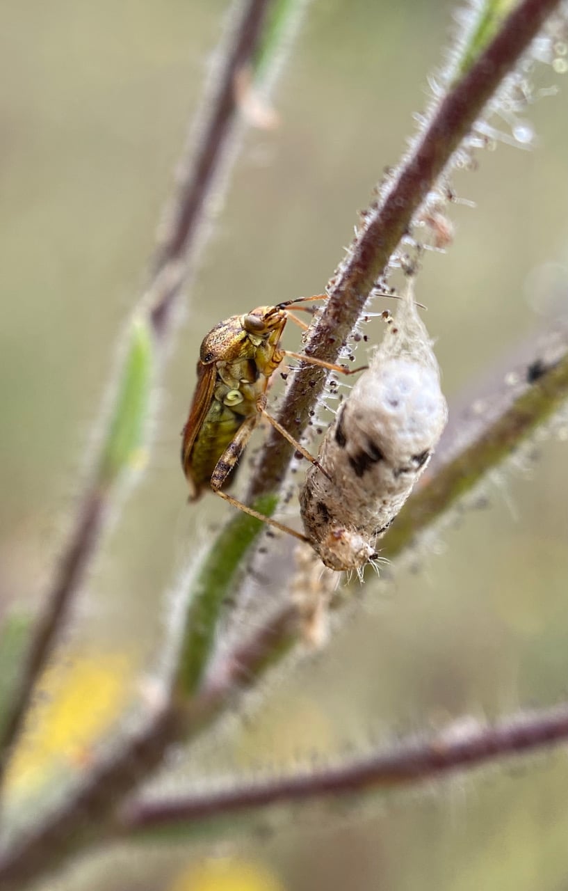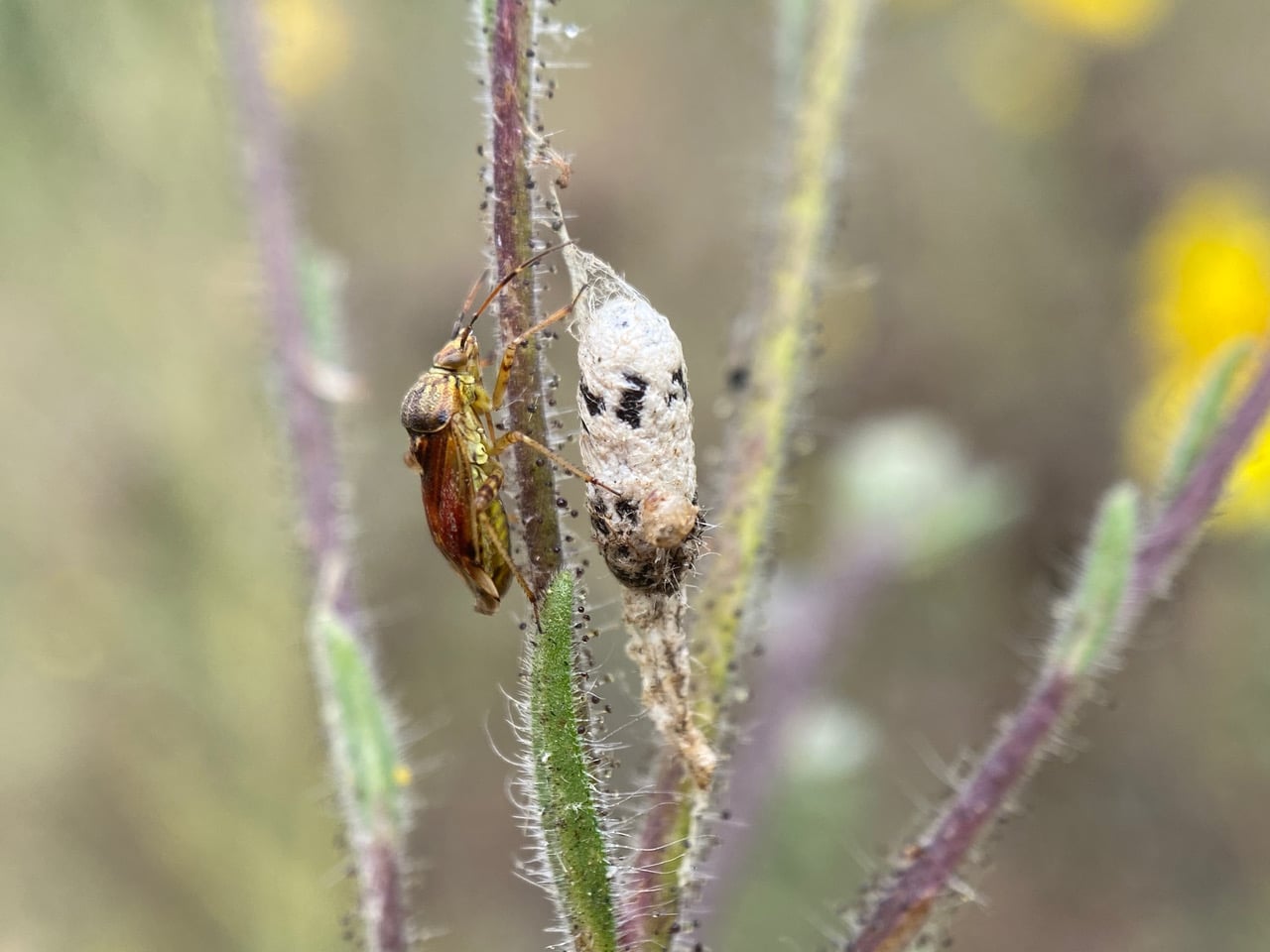Ha, here’s a Hyposoter cocoon! But what’s that Lygus Bug doing standing over it? Lygus Bugs are plant bugs that feed on plant sap.