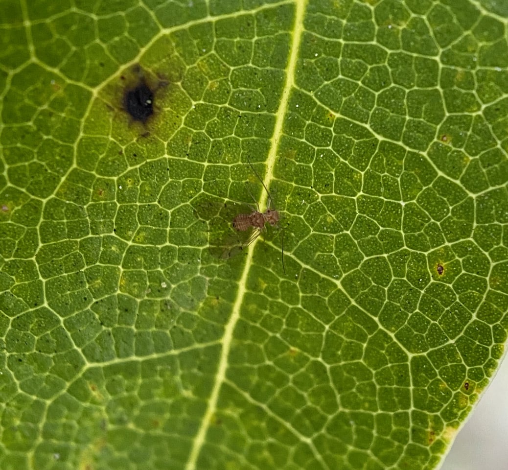 Even smaller than the midge is this odd looking insect, less than 2 mm. It is an Outer Barklouse in the family Ectopsocidae (order Psocodea, formerly Psocoptera).
