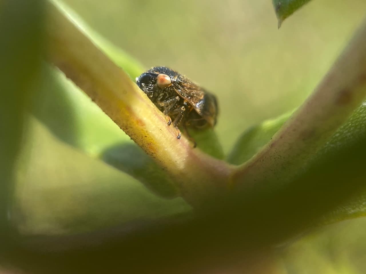 This is as close as I can get to a Spittlebug, and still I can’t see its rostrum (piercing-sucking mouthparts of a Hemipteran or “true bug” that is folded under the body when not in use). Sigh!