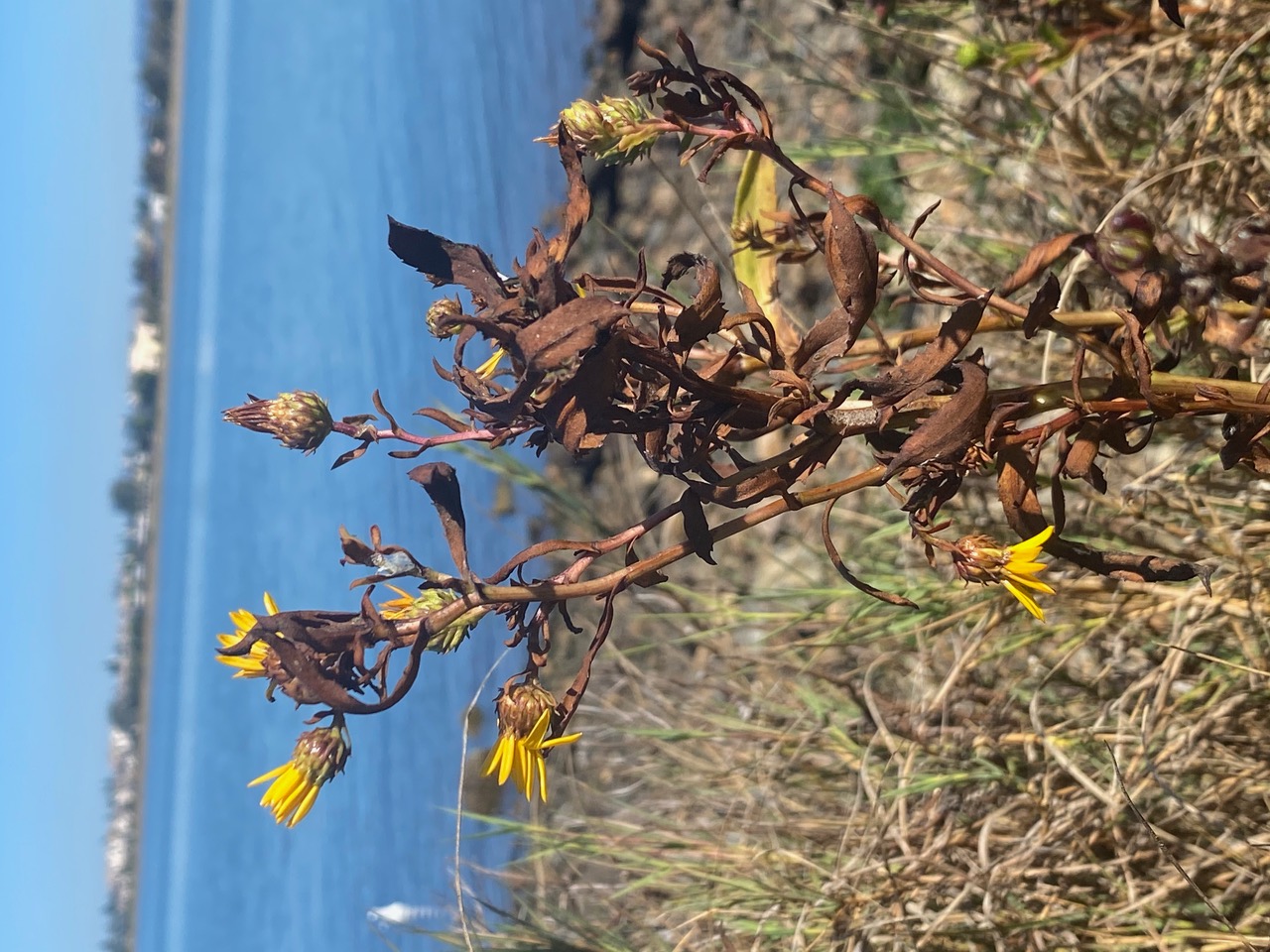 Some of the Oregon Gumweed, Grindelia stricta along the shore are turning brown and dying back. These plants are heavily infested with Lace Bugs (family Tingidae) and Spittlebugs (family Clastopteridae)