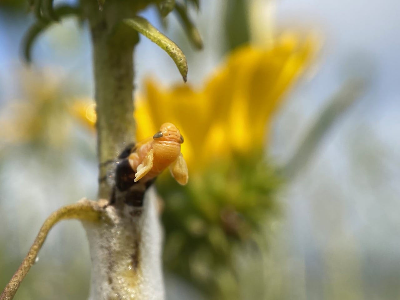 Froghoppers are the most polite insects I know. Despite their jumping prowess, they are the perfect photographic subject as they don’t usually flee. When feeling threatened, they simply sidle to the other side of the stem or leaf to be out of sight.