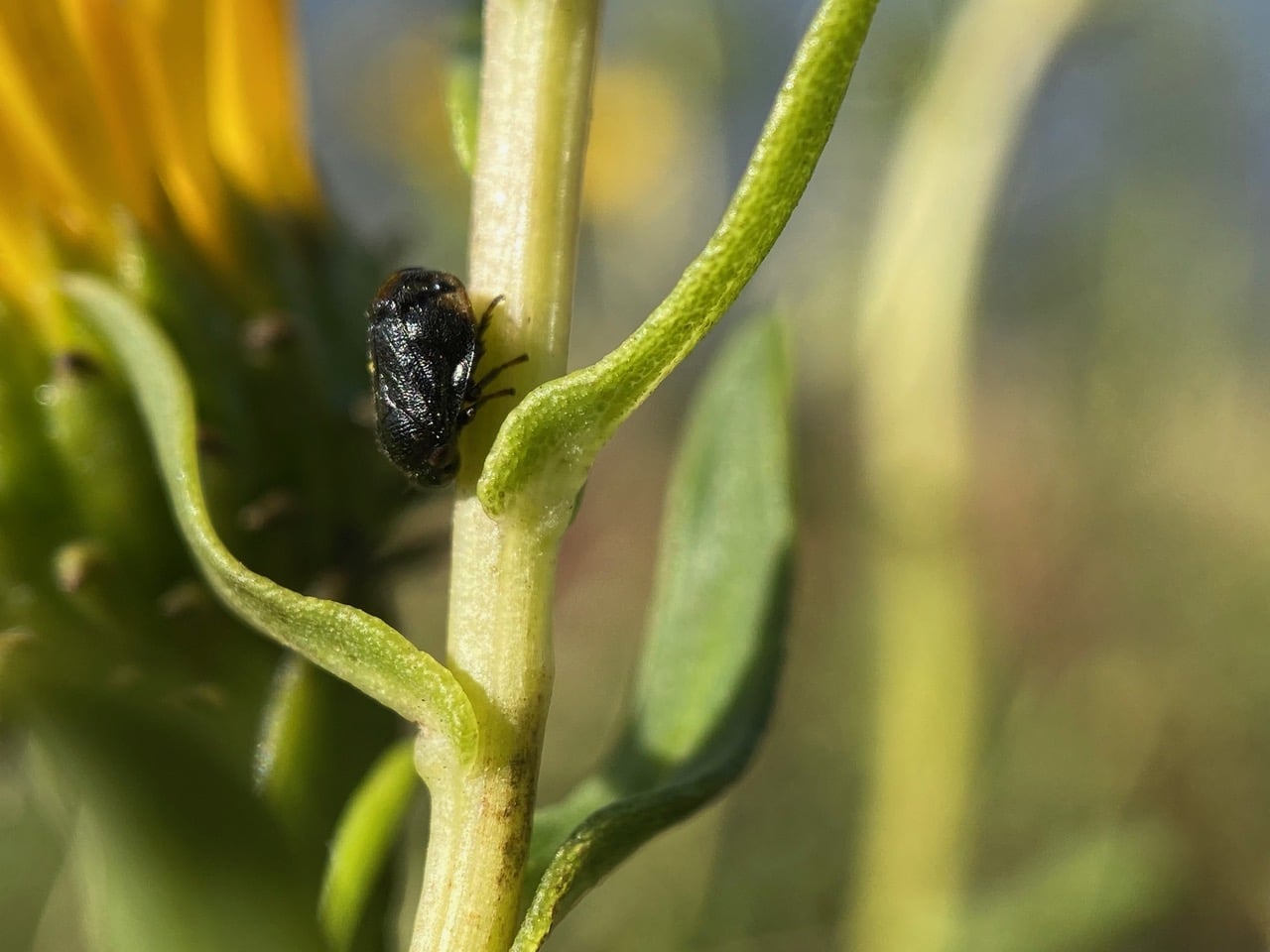 I am glad that I have marked the Grindelia plant on which I have observed a Spittlebug undergo its last molt into an adult two days ago. I have no difficulty finding that individual today – it is on the exact same stem, not far from where it was yesterday. These bugs are remarkably sedentary and easy to track!