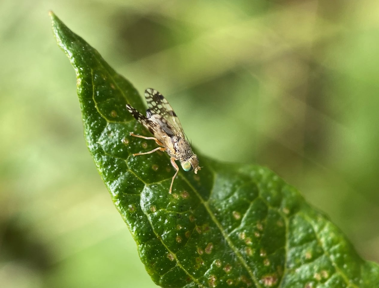 A Tephritidae expert on iNaturalist has helped identify our fruit fly as a member of the genus Tephritis.