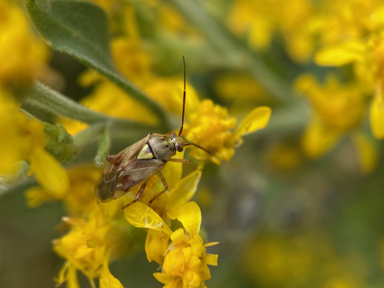 I discover a nice little patch of blooming California Goldenrod, Solidago velutina ssp. californica. A Lygus Bug (family Miridae) is exploring an inflorescence.