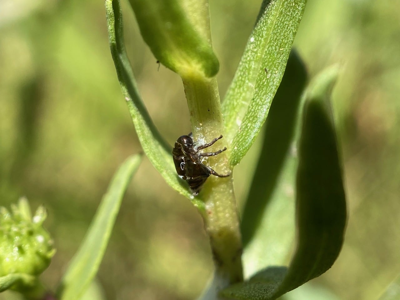 It is apparent that many of the nymphs have crawled out of their foamy homes to molt into adults. Surely I should be able to find an adult?