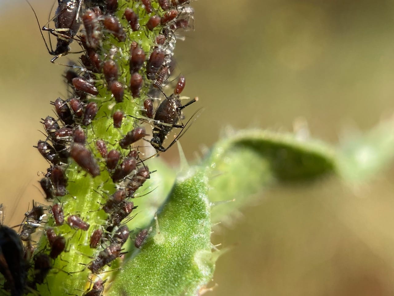 A big mama aphid is giving birth to a baby!