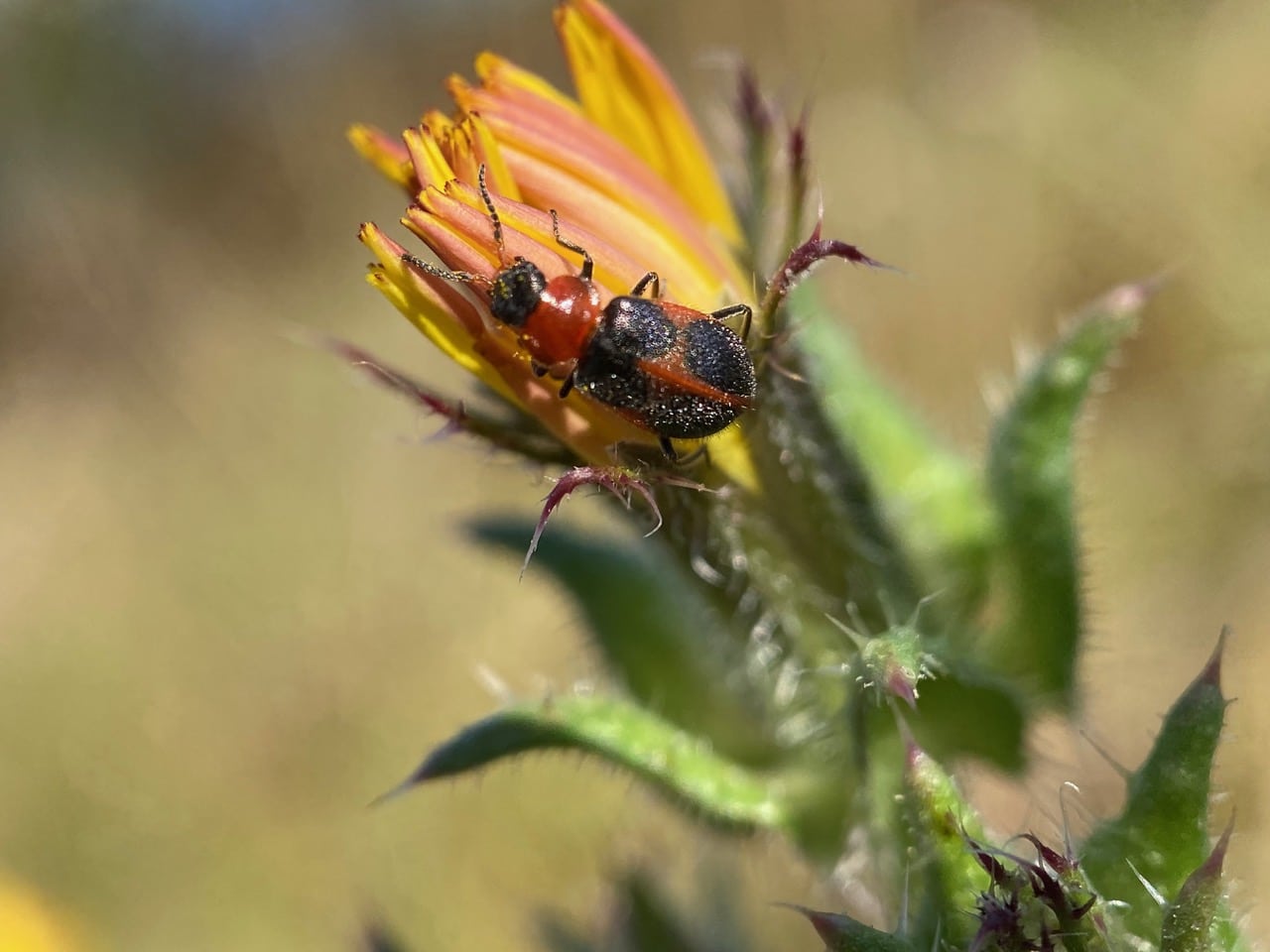 There are quite a few Collops on the plant. The males are easier to observe as they are not moving around much, being preoccupied with their antennae.