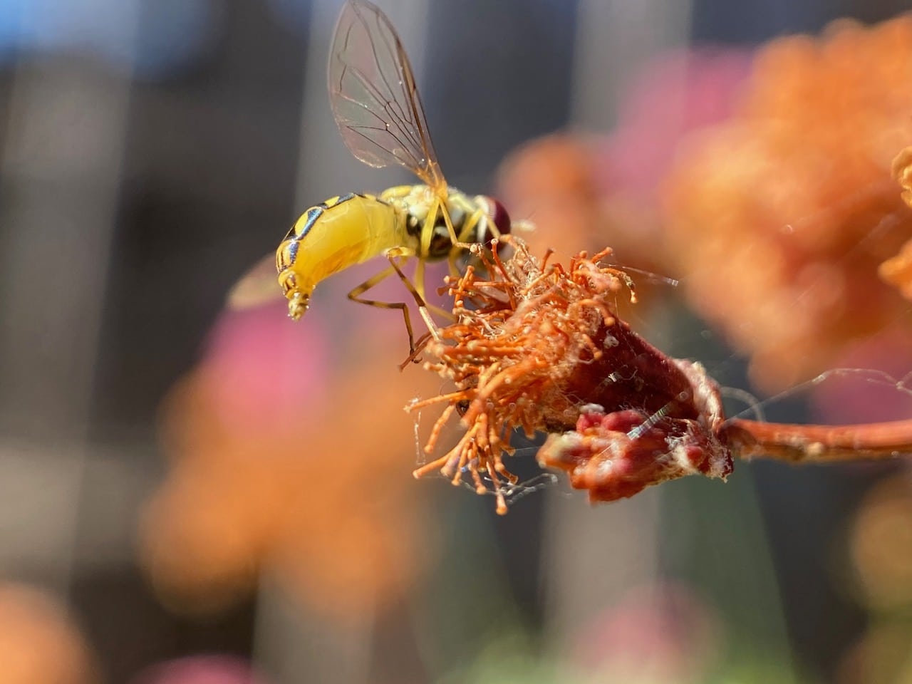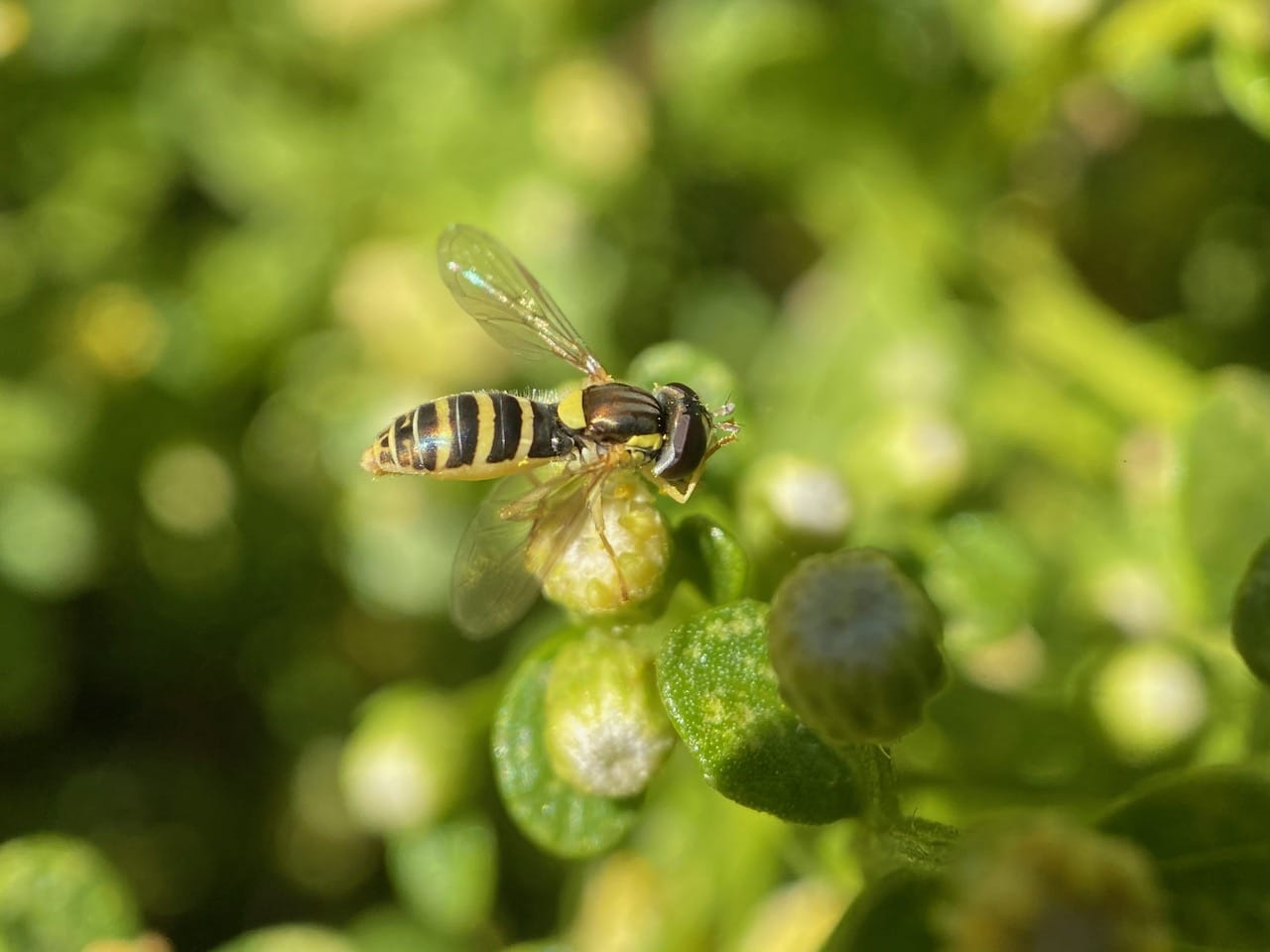 While the number and diversity of bees have declined considerably, the hover flies are still going strong in the garden. They seem to outlast all the other pollinators through the seasons.