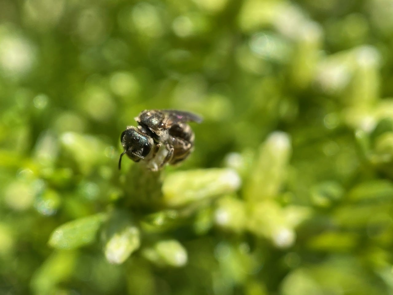 The wasp seems to be missing its right antenna. iNaturalist has helped identify it as a chalcid wasp, Ormyrus sp. (family Ormyridae).