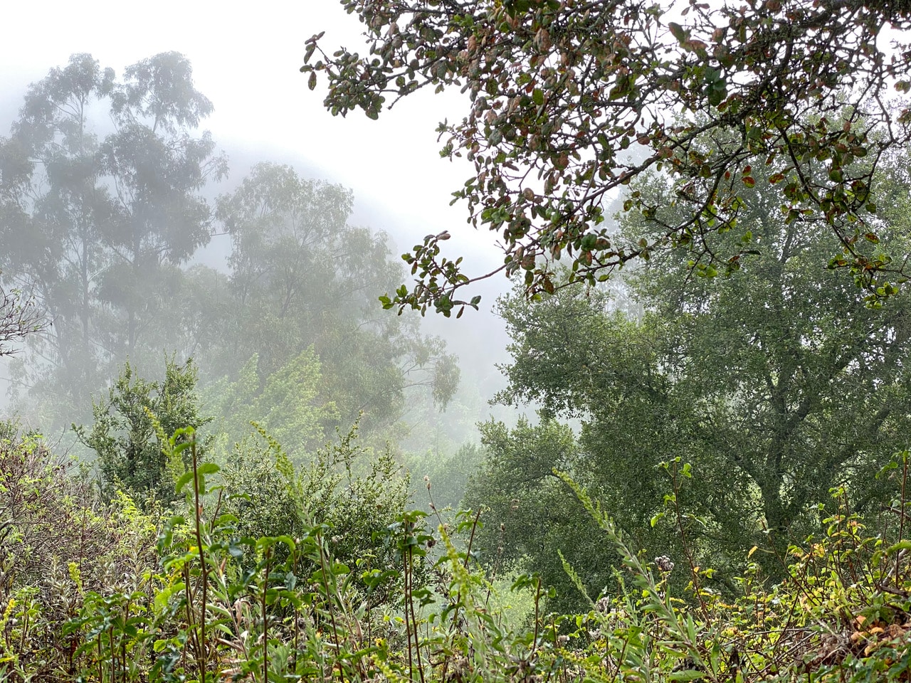 The lingering fog tempers the late summer heat in the Berkeley hills, and provides much needed moisture to the vegetation.