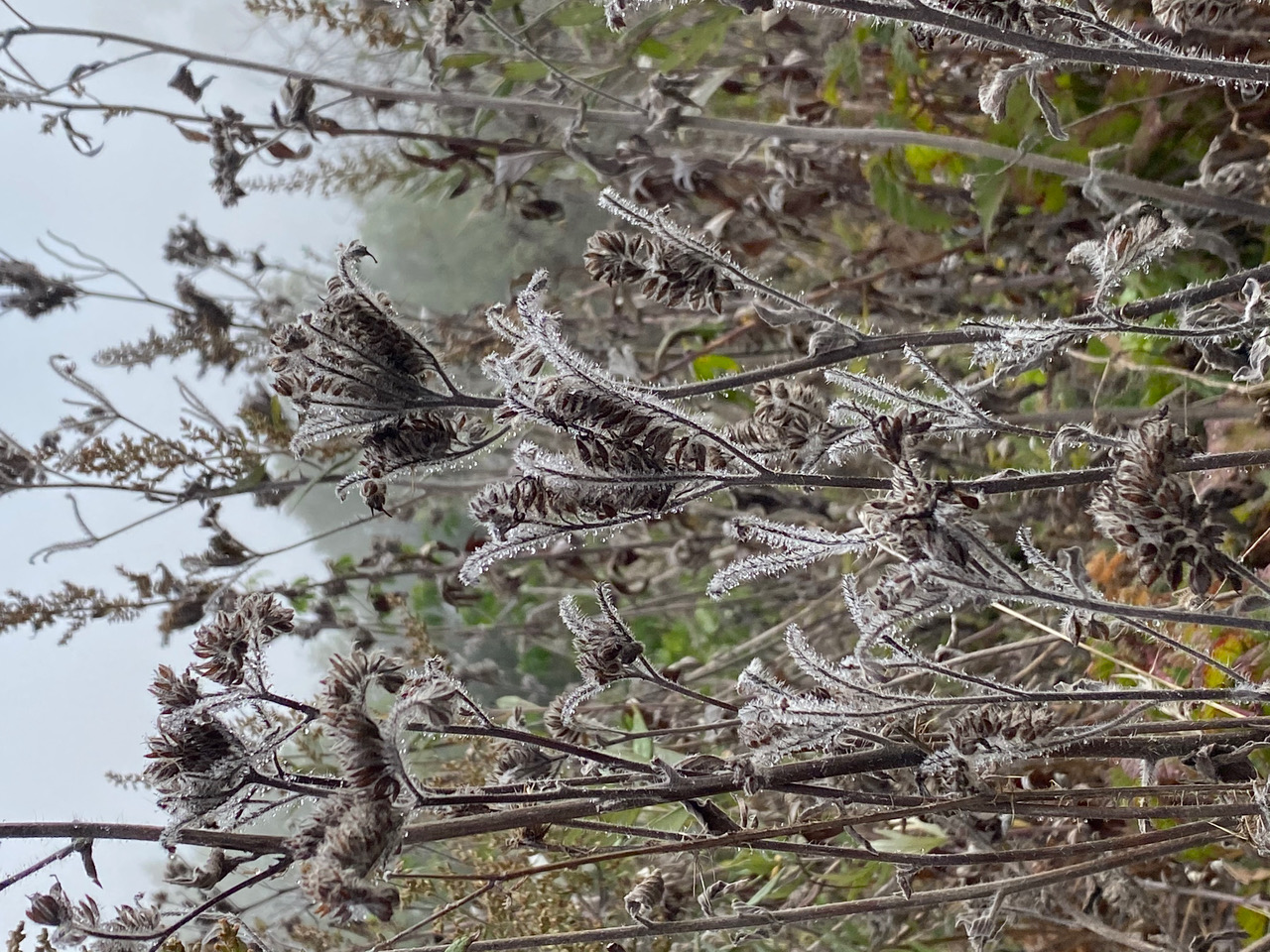 Along the paved road to the Radio Tower, dew drops have transformed the patch of dried California Phacelia into a magic kingdom.
