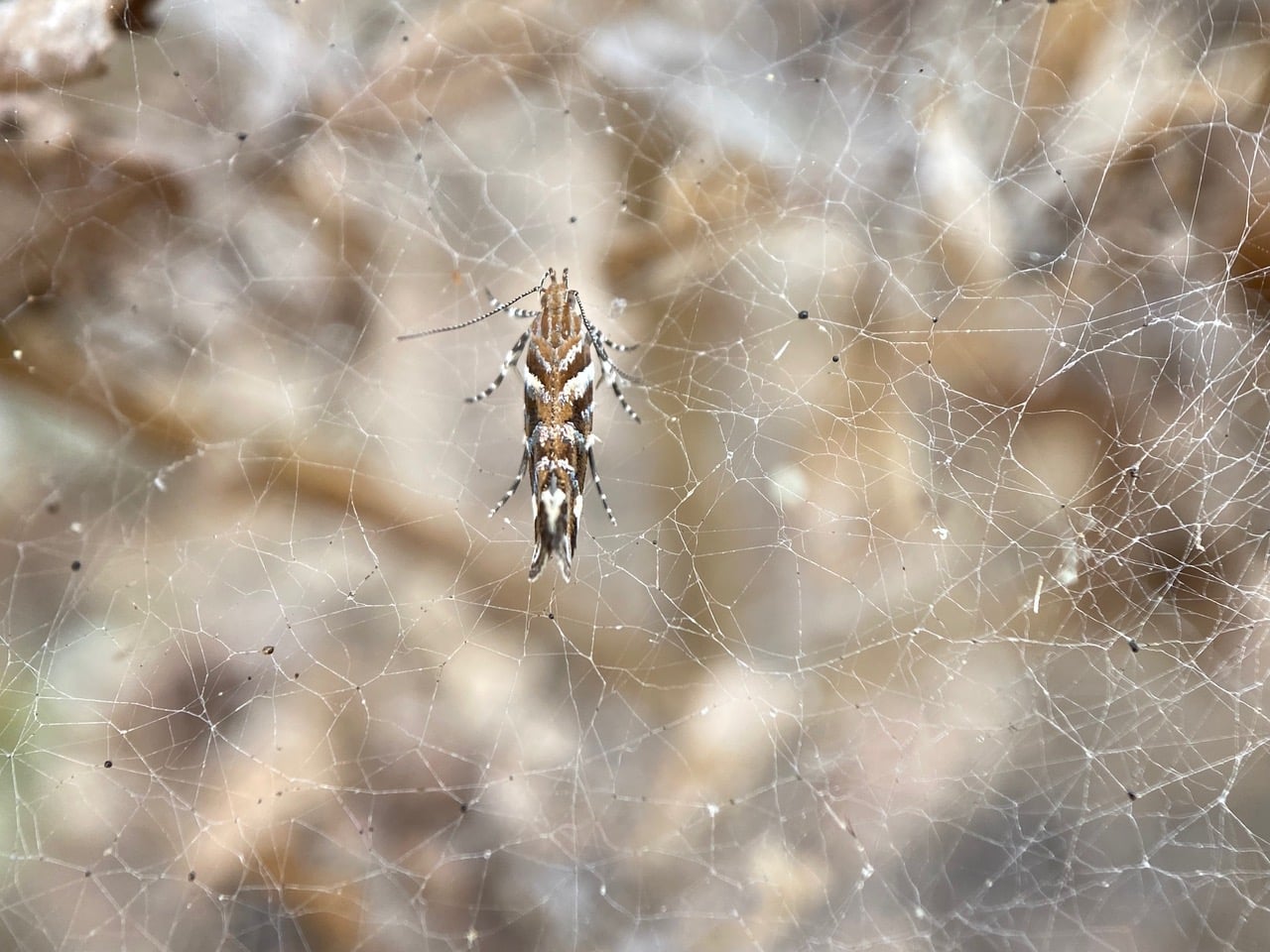 Dozens of small moths are flying around the Coyote Brush. One just flew into a spider web. Ah, it’s the Twirler Moth, Aristotelia sp. (family Gelechiidae) that I first saw on 8/24 on this very plant.