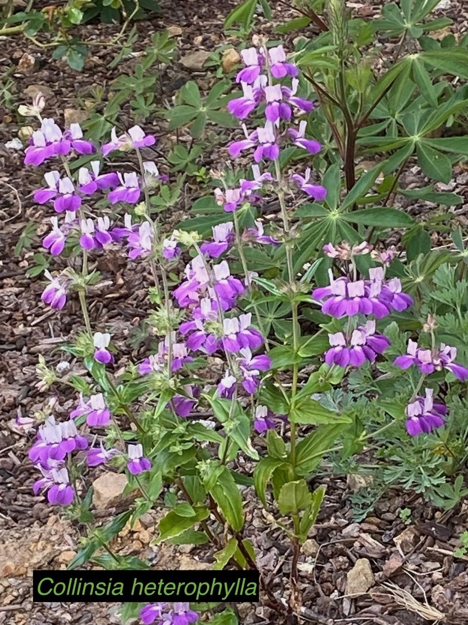 Stellar and scrub jays, mourning doves, hummingbirds, finches and other birds flit through, searching for insects or seeds. Many different bees are seen on the plants and on the ground, and fence lizards bask on the rocks on sunny days.