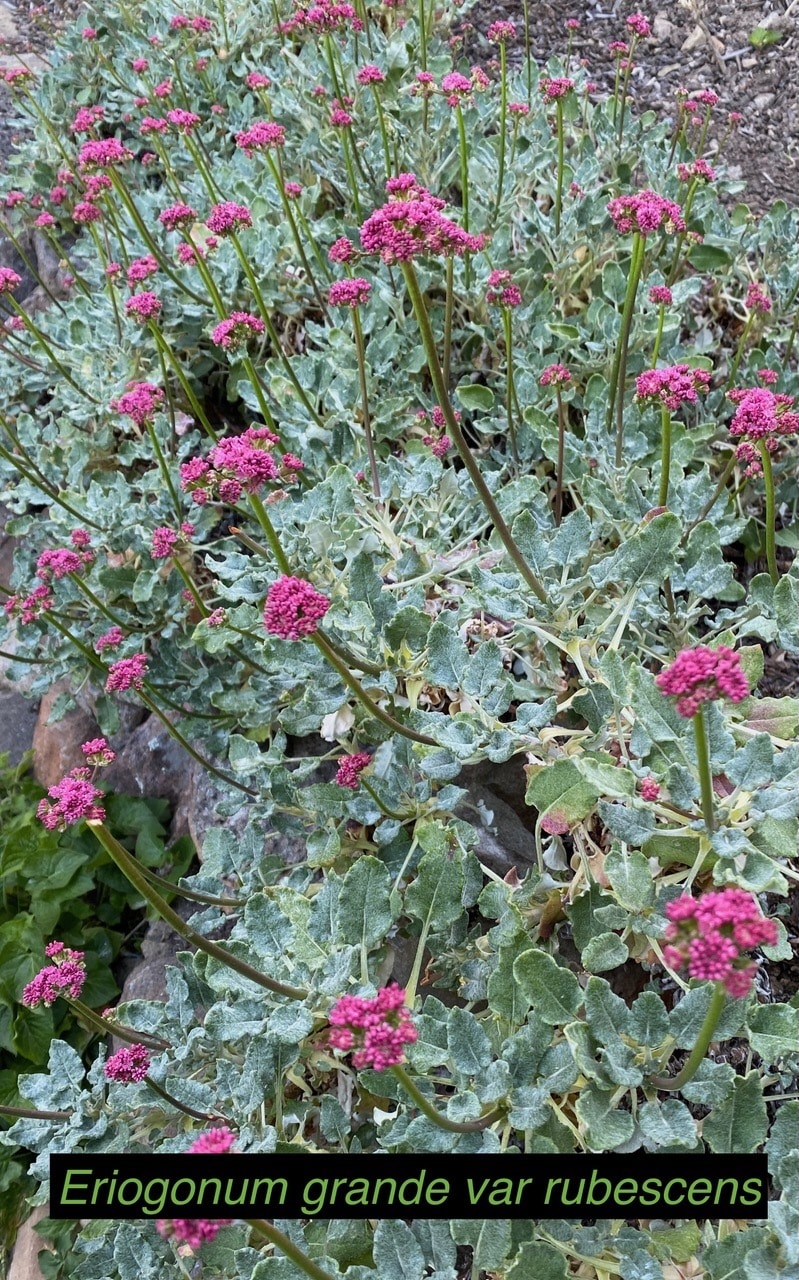 This large garden, which is on a steep slope, is home to an enviable collection of shrubs, such as nine types of manzanita and sages, seven kinds of California lilac, and five varieties of buckwheat and lupine, which are interspersed with toyon, silk tassel, mountain mahogany and more.