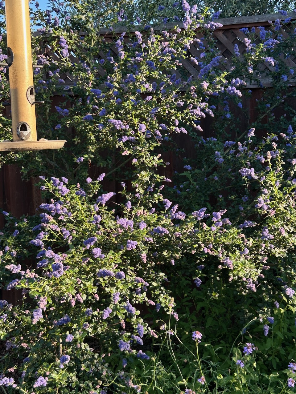 Scrub jays, house finches, goldfinches, woodpeckers, mockingbirds, sparrows, black phoebes, doves, chickadees, and hummingbirds now frequent the garden.