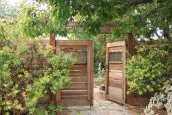 The perimeter of the back garden is ringed with natives that soften the fence line and create a cozy, enclosed space. These include ocean spray, with its cascading cluster of fragrant, cream-colored blossoms, hazelnut, ninebark, toyon, redbud, and more.